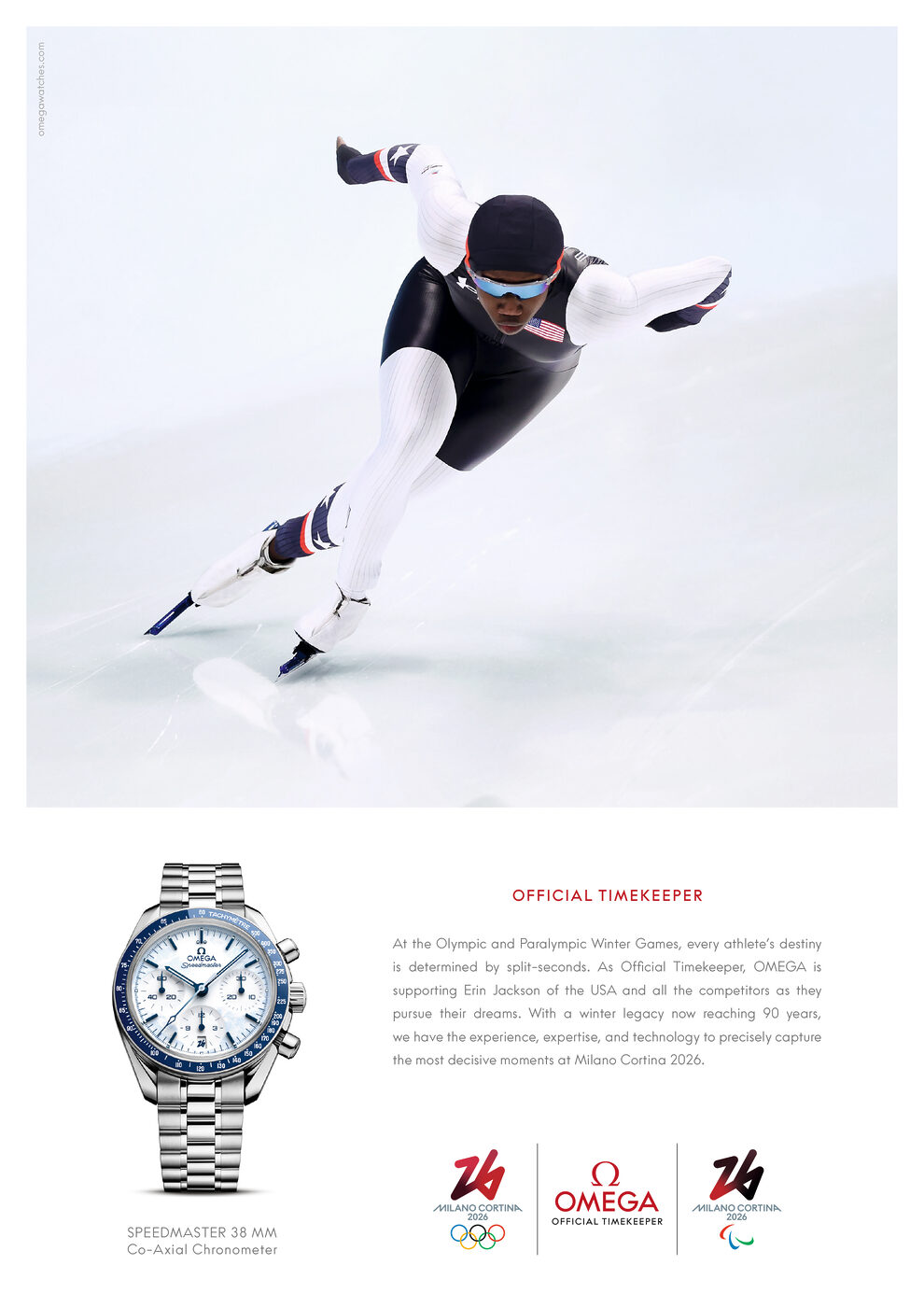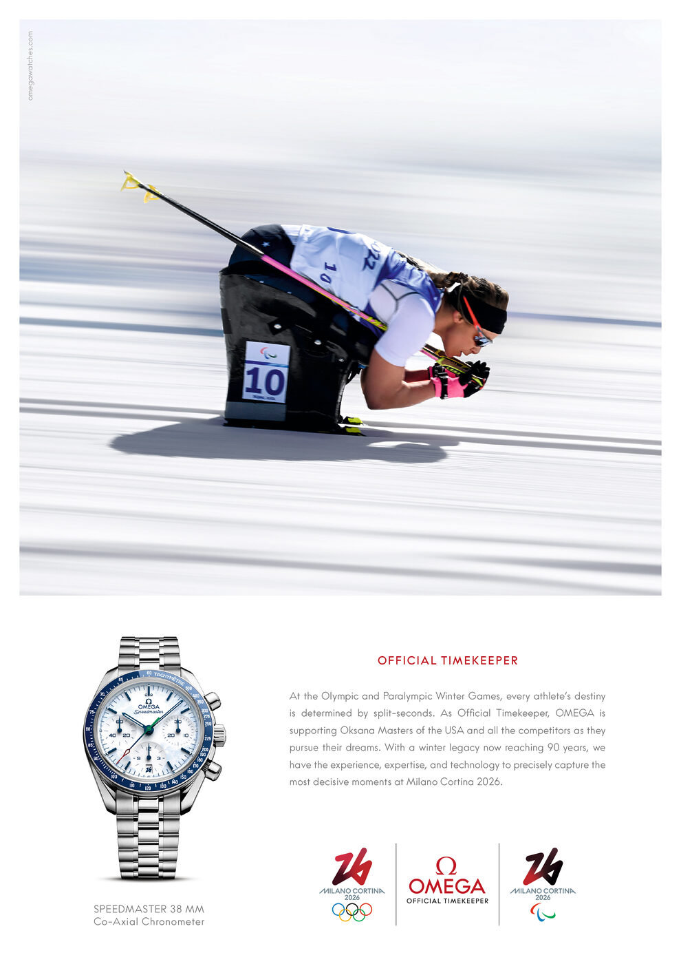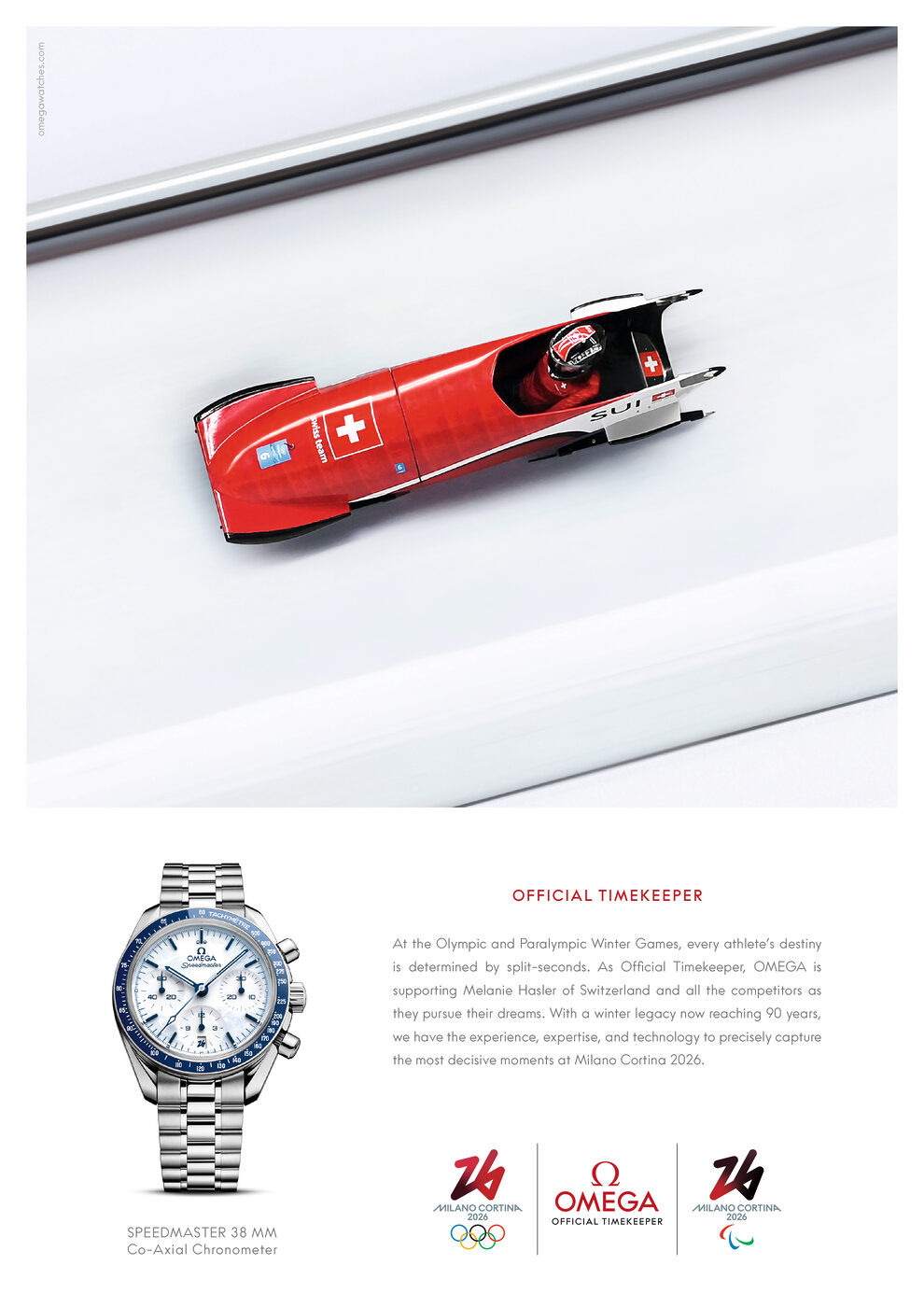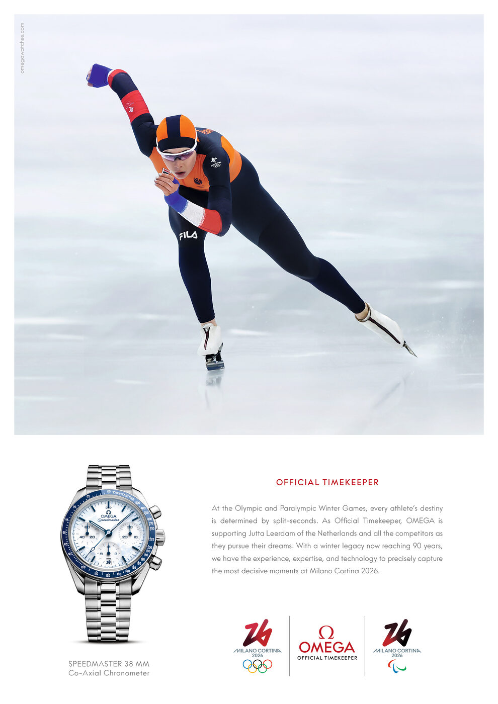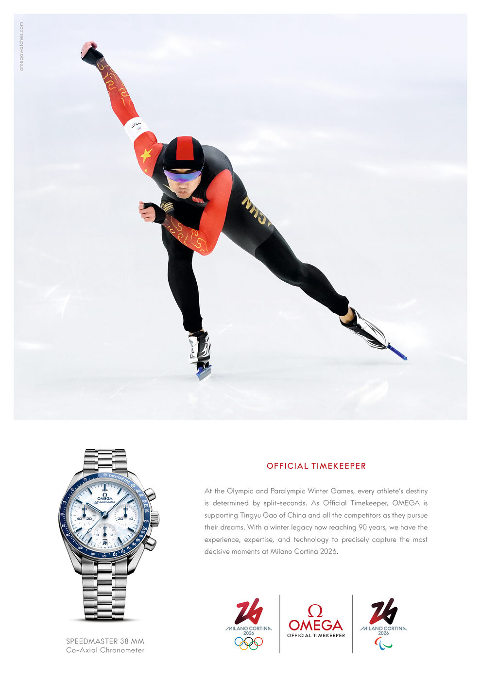 이 뜻깊은 순간을 기념해 오메가는 새로운 공식 타임키퍼 캠페인을 선보였다. 올림픽과 패럴림픽 무대에 출전하는 오메가 앰배서더 선수들을 주인공으로 한 프린트 비주얼 시리즈는, 절제되고 담백한 화이트 배경 위에 설원과 빙판에서 펼쳐지는 역동적인 움직임을 포착한다. 군더더기 없는 구성 속에서 선수들이 펼치는 퍼포먼스는 더욱 선명하게 부각되며, 이는 1932년부터 이어져온 올림픽 타임키퍼로서 오메가의 헌신을 시각적으로 환기한다.
