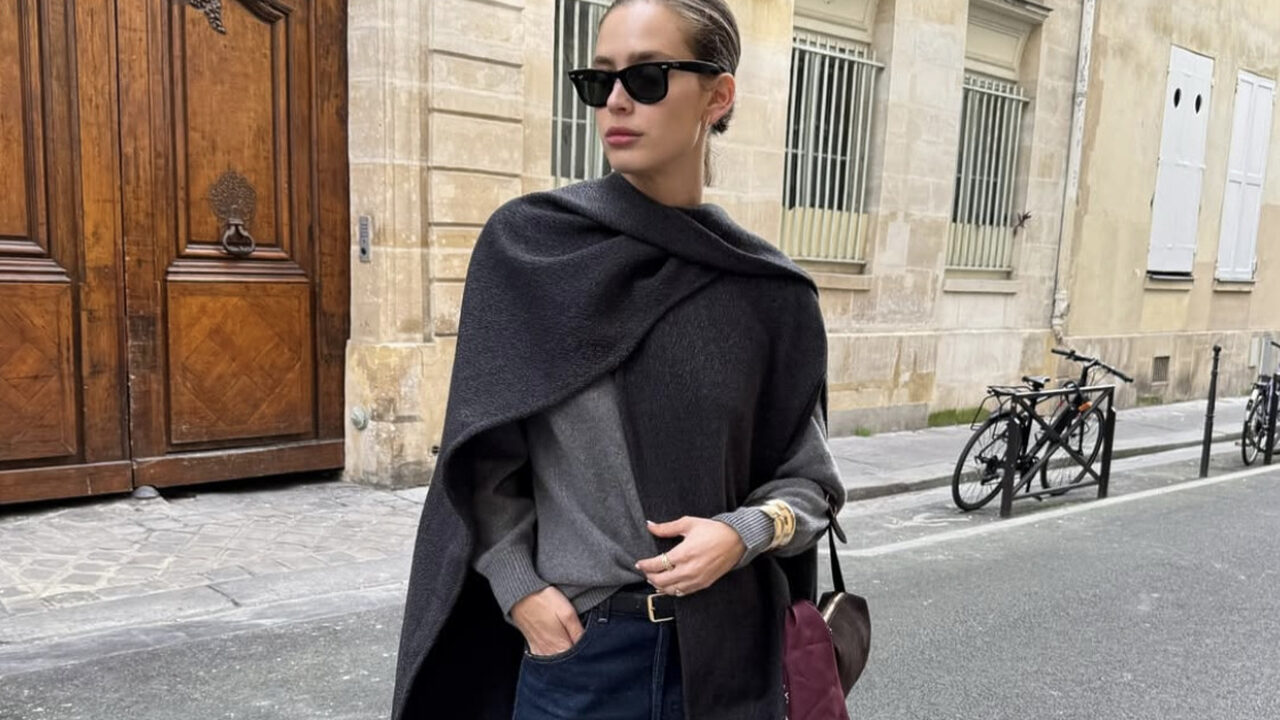 벨라 하디드처럼 보헤미안 무드로 커다란 크로스 혹은 숄더 백에 긴 스카프를 달아주는 것 외에도 미니 백을 활용해 보세요. 가방 자체가 눈에 띄지 않아야 오히려 더 세련되 보이는 이 새로운 가방 꾸미기. 심플하고 모던한 블랙 미니 백의 한쪽에 고급스러운 버컨디 컬러의 스카프를 매달아 주었어요. 자연스럽게 흘러내리는 스카프의 텍스쳐가 우아하기 그지없죠. 배럴 진에 블랙 케이프를 걸친 클래식하고도 시크한 옷차림에 볼드한 골드 뱅글과 더불어 이 새로운 스카프를 활용한 ‘백꾸’의 디테일이 단숨에 눈길을 사로잡습니다.