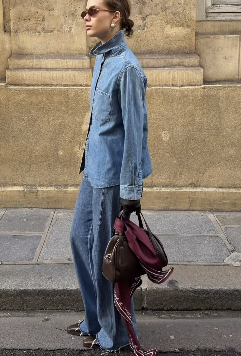 클래식한 토트 백 또한 이 스카프를 활용한 가방 꾸미기에 제격이에요. 올 데님 룩에 매치한 디테일이 없는 브라운 토트 백에 단 스카프가 고급스러움을 더합니다. 스카프의 장점은 움직일수록 더 스타일리시해 보인다는 것. 이전까지 유행했던 백 꾸미기 아이템들이 다소 유치하게 느껴졌다면 이제는 이 클래식하고 성숙한 스카프를 활용해 걸음 걸음마다 우아함을 더해 보세요.