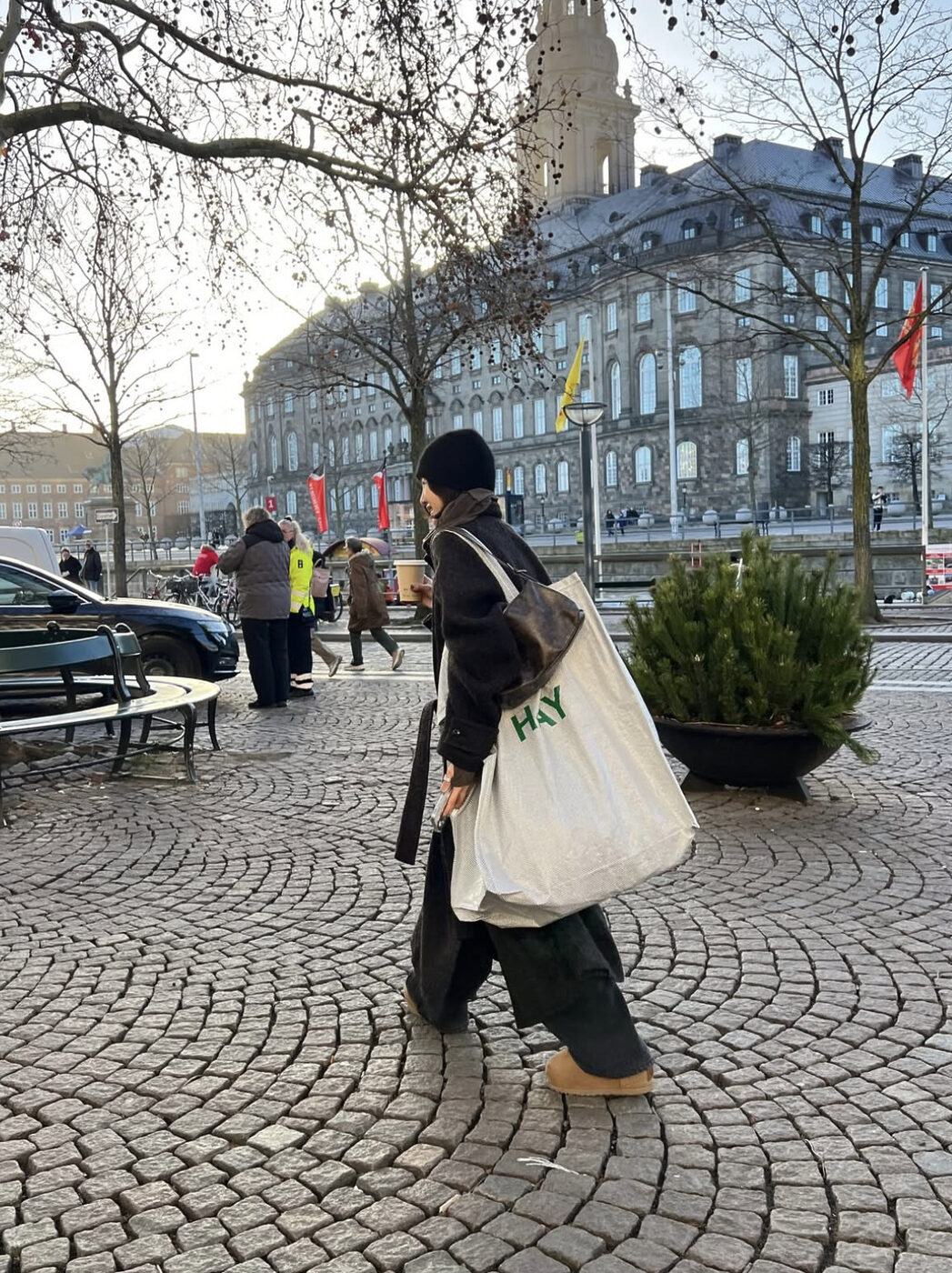 겨울에는 가방 하나 고르는 것도 은근히 까다롭습니다. 코트, 니트, 레이어드까지 이어지는 옷 자체의 부피가 큰데 여기에 각 잡힌 백이나 가죽 가방을 들게 되면 무거워 보이기 쉽죠. 어깨에 매기도 곤란하고요. 그래서 요즘 인플루언서들도 이 겨우내에 에코백을 들기 시작한 듯 합니다. 구조감이 단순해서 코트 위에도 튀지 않고, 두툼한 아우터 룩을 해치지 않죠. 복잡한 겨울 룩을 단순화시키는 작업이랄까요.
