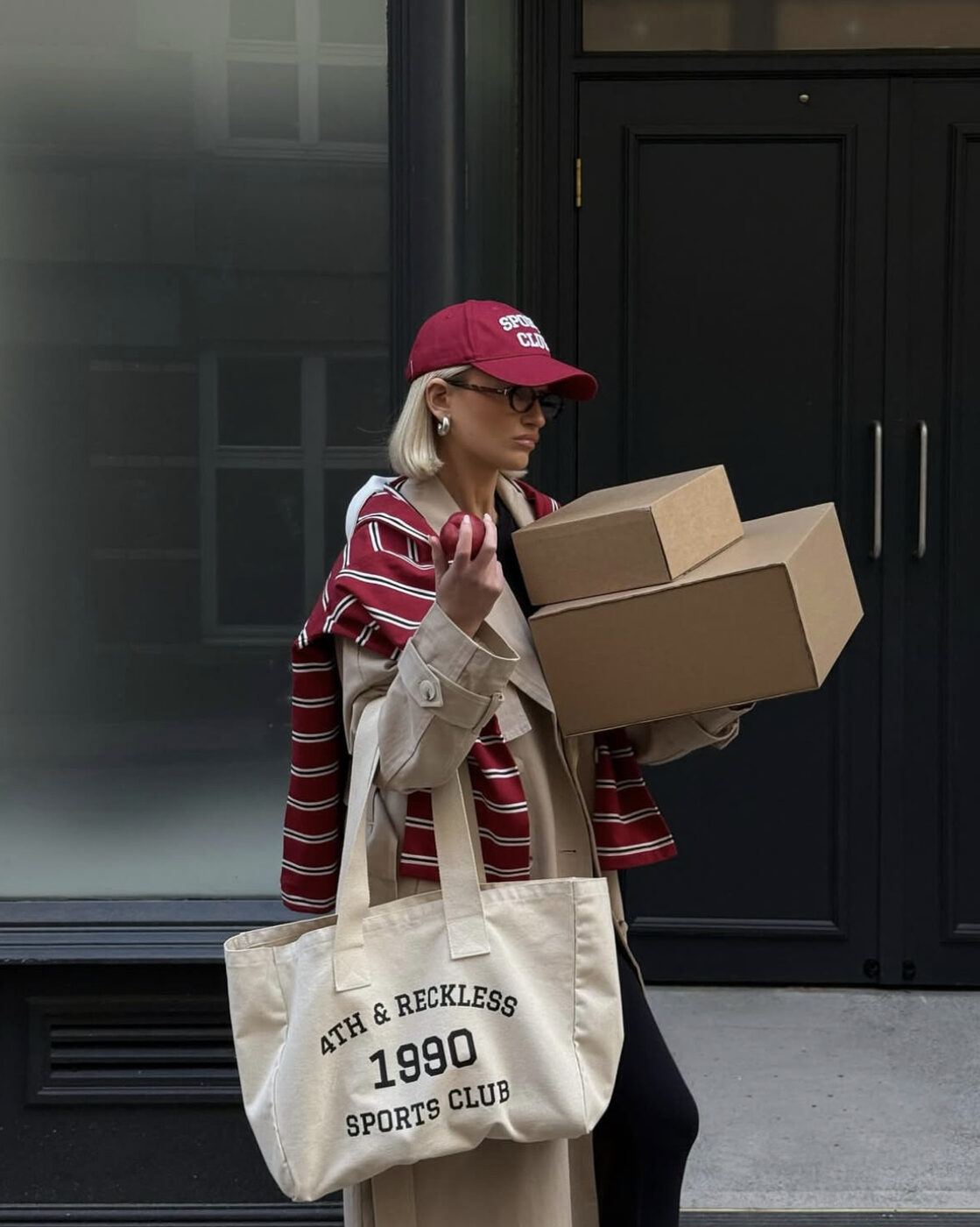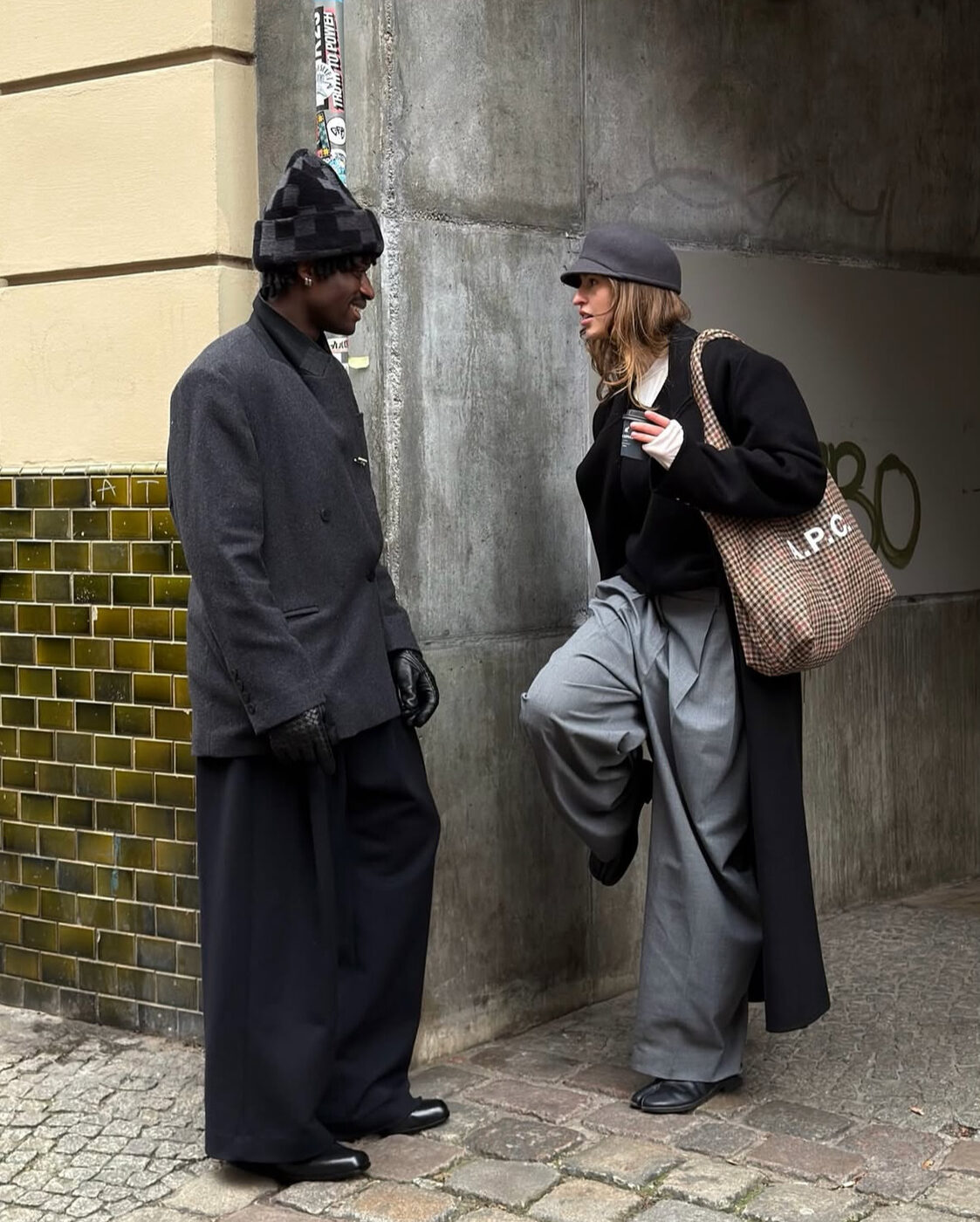 그리고 에코백을 꼭 무난한 솔리드 컬러로만 들 필요는 없습니다. 체크 패턴이나 컬러가 섞인 디자인으로 변주를 줘보세요. 특히 겨울엔 브라운 계열이 들어간 에코백이 어디에나 잘 붙어서 활용도가 높을 거고요. 매니시하고 테토력 넘치는 패션 인사이더 시나 안줄리의 스타일링을 참고해도 좋겠습니다. 이런 조합을 보면 에코백이야말로 범용성이 좋은 가방이라는 걸 체감합니다.