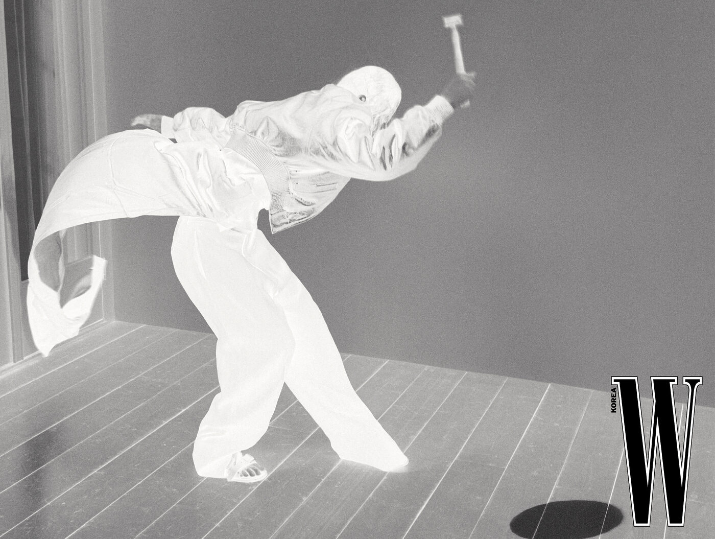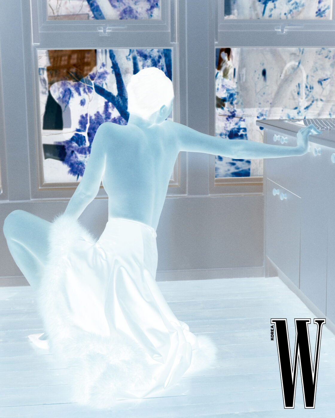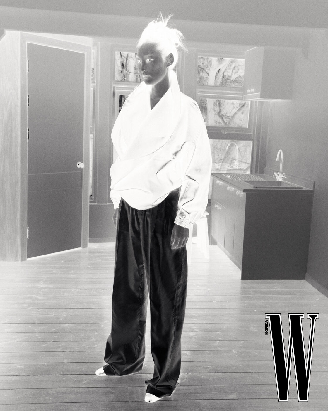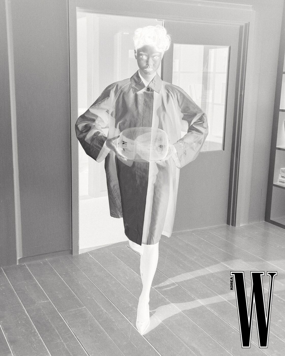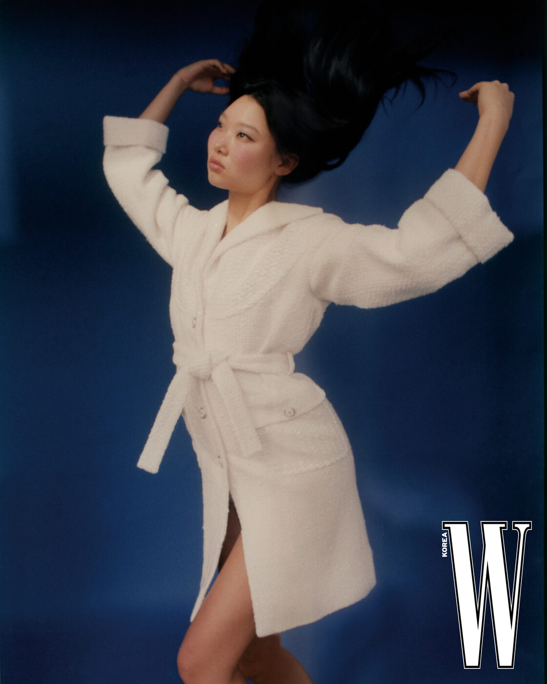 배스 가운을 모티프로 한 코트는 Chanel 제품.