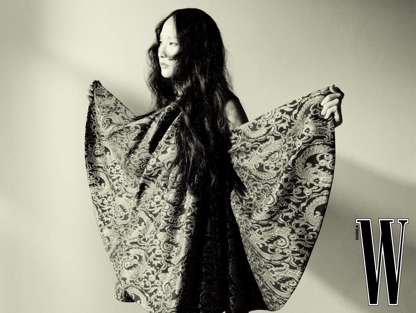 오리엔탈풍 자수 드레스는 Louis Vuitton 제품.
