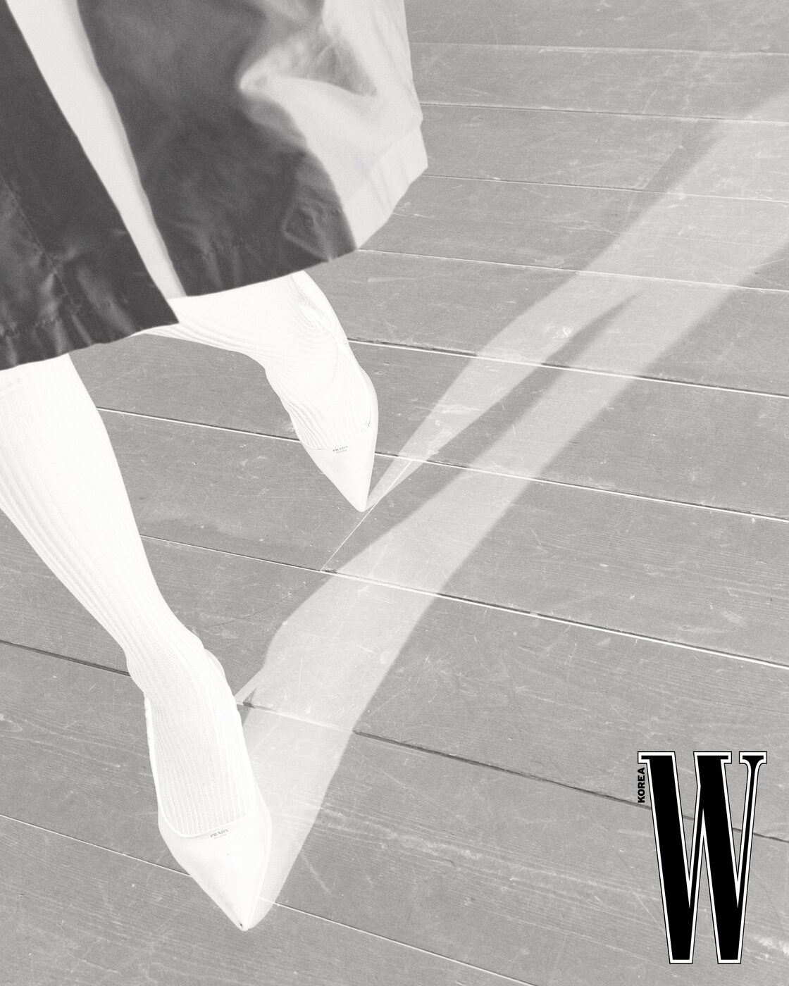 나일론 코트와 슈즈는 Prada 제품.