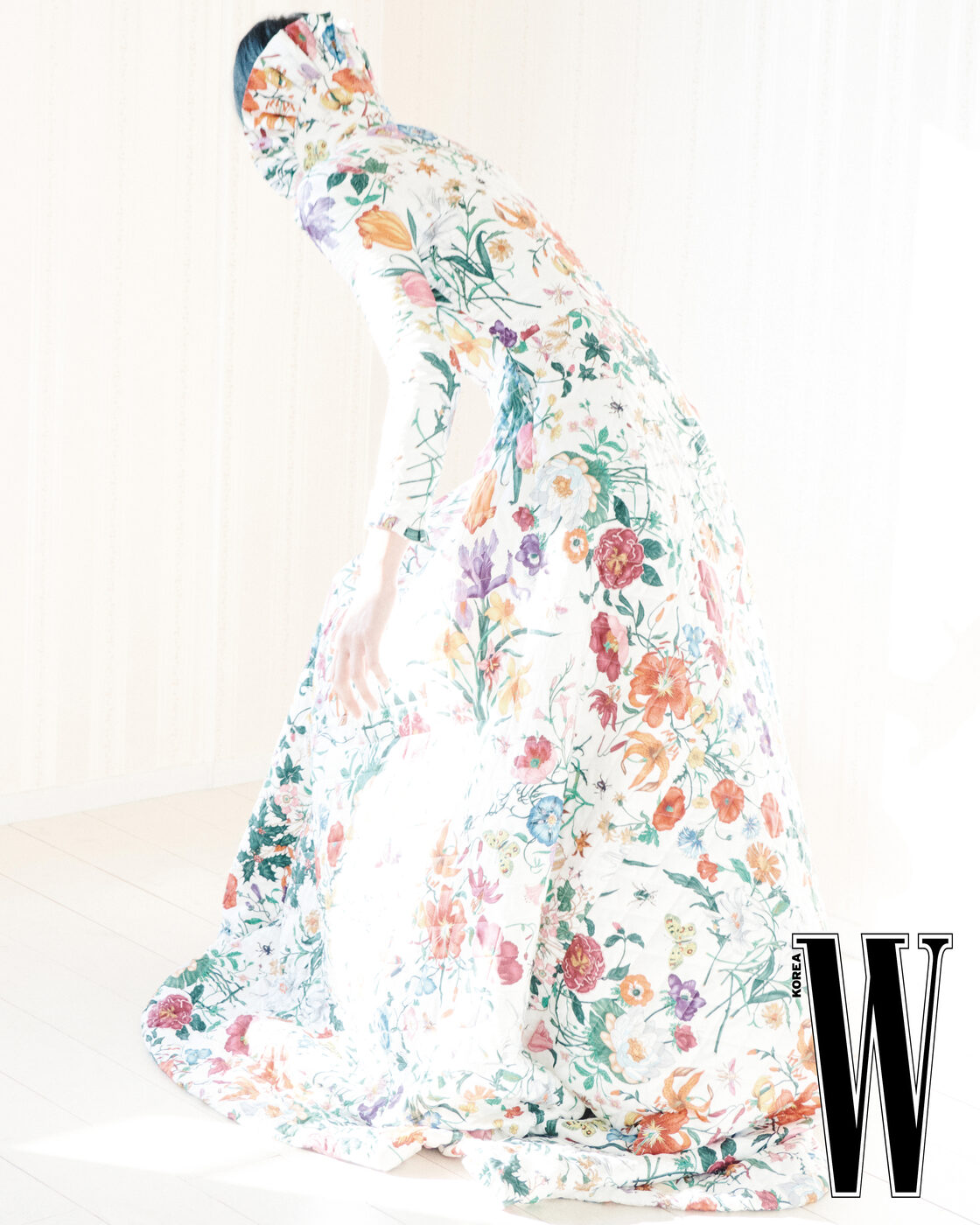 퀼티드 플라워 드레스는 Gucci 제품.