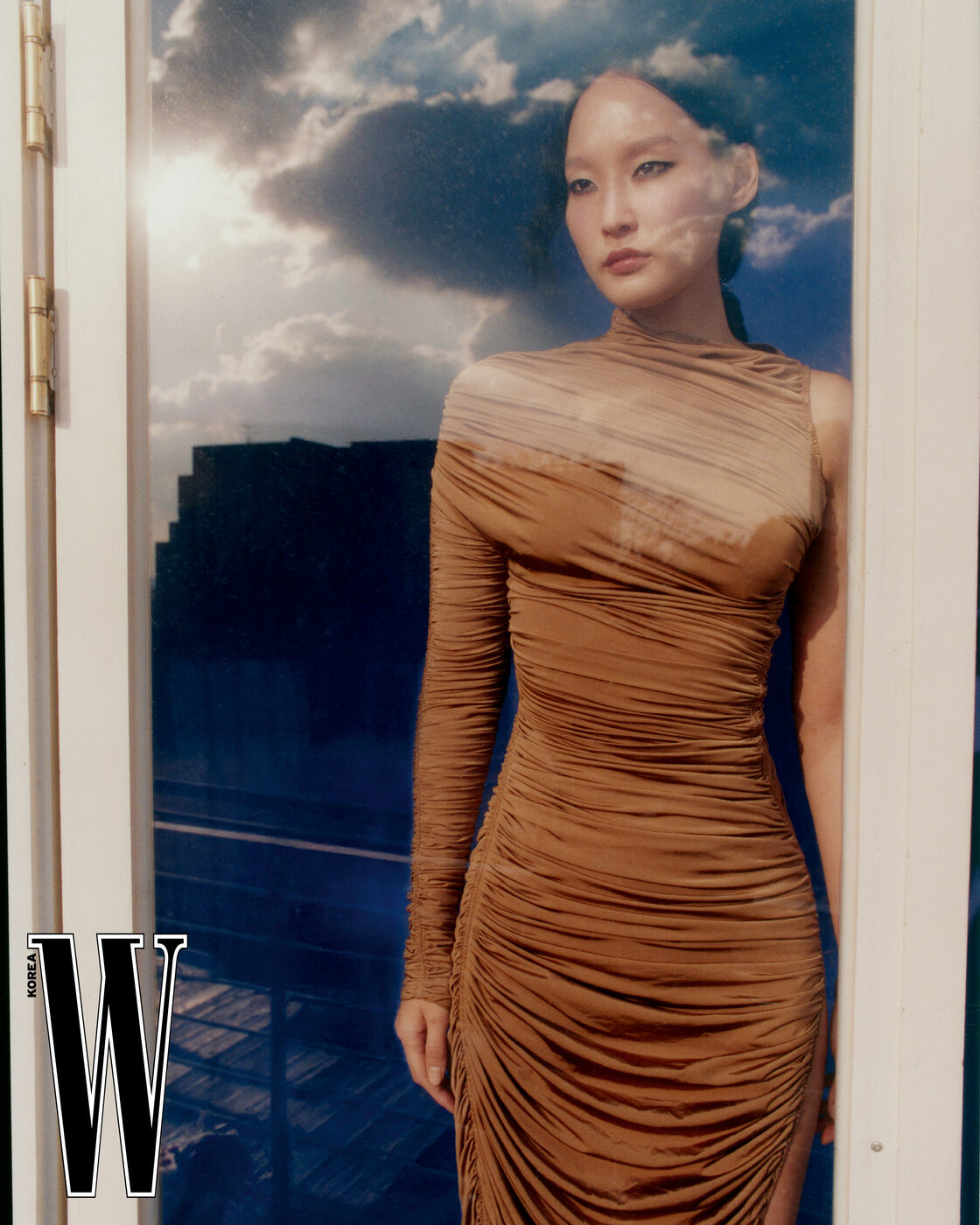 주름 드레스는 Mugler 제품.