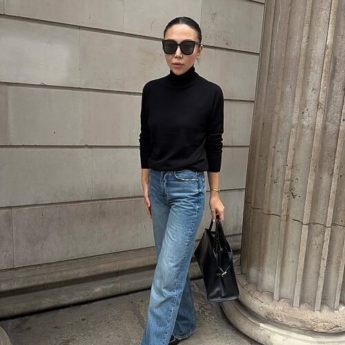 스트레이트 팬츠보다 오히려 데일리 룩으로 손색없는 아이템이 바로 부츠컷 데님 팬츠입니다. 의외로 어떤 무드의 룩에도 잘 어울려 활용도가 높을 뿐 아니라, 스타일 지수까지 한층 끌어올려주기 때문이죠. 특히 데님 소재의 부츠컷 팬츠는 캐주얼과 드레시한 요소를 자유롭게 넘나들 수 있어 더욱 매력적입니다. 다코다 존슨은 캐주얼한 데님 소재의 부츠컷 팬츠에 시스루 톱을 매치해 스타일에 반전을 꾀했습니다. 편안한 아이템에 과감한 요소를 더하며 센스 넘치는 룩을 완성했네요!