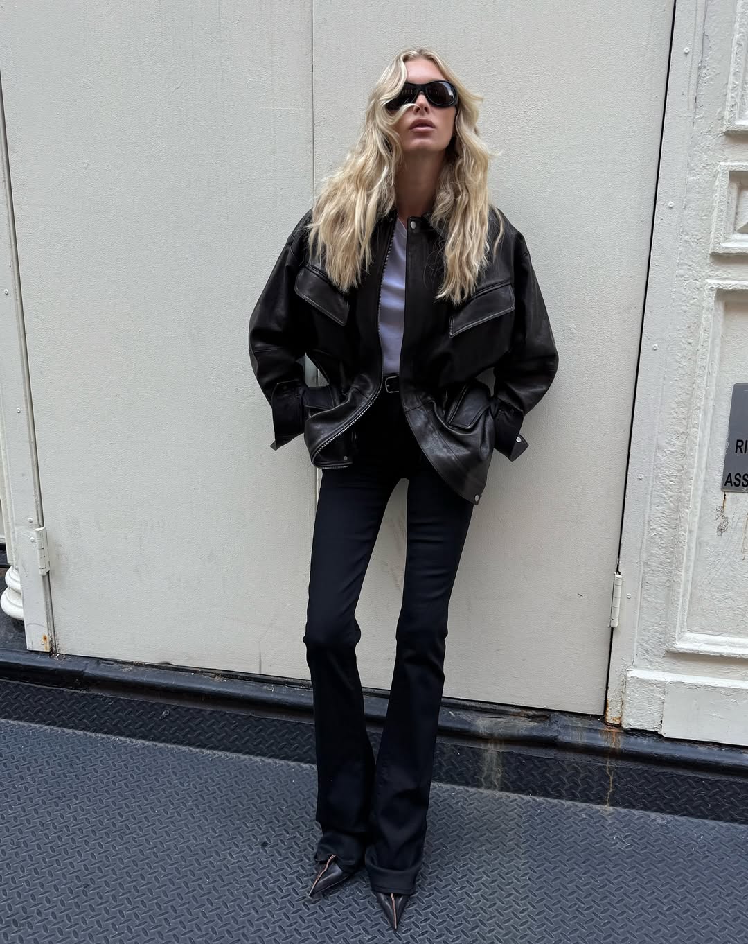 요즘 헤일리 비버의 애착템은 플레어 실루엣의 팬츠입니다. 미니멀한 무드의 룩을 즐겨 입는 그녀에게 부츠컷 팬츠는 특히 잘 어울리는 선택이죠. 최근에는 베이직한 블랙 부츠컷 팬츠에 크롭한 레더 아우터를 매치해 다리 라인을 한층 더 길고 늘씬하게 강조한 룩을 선보이기도 했습니다. 허리부터 무릎까지는 슬림하게 떨어지고, 밑단으로 갈수록 자연스럽게 퍼지는 실루엣이 룩에 리듬감을 더하죠. 특별한 액세서리 없이도 플레어 라인 자체가 충분한 포인트가 되어, 쿨하면서도 힘 있는 스타일을 완성합니다.