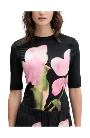 플라워 패턴이 다소 지루하게 느껴진다면 오히려 과감하게 밀어붙여 봅시다. 화려하고 비비드한 컬러로 플라워 패턴에 경쾌한 에너지를 더한 셀린느처럼요. 컬러풀한 꽃무늬는 그 자체로 충분히 강렬하기 때문에 자칫 촌스러워 보이기도 쉽습니다. 강렬한 패턴일수록 스타일링은 담백해야 하죠. 셀린느는 미니 드레스 하나로 룩을 완성하고 블랙 로퍼와 심플한 핸드백으로 마무리했습니다. 과감한 패턴과 절제된 아이템의 대비가 인상적이죠.