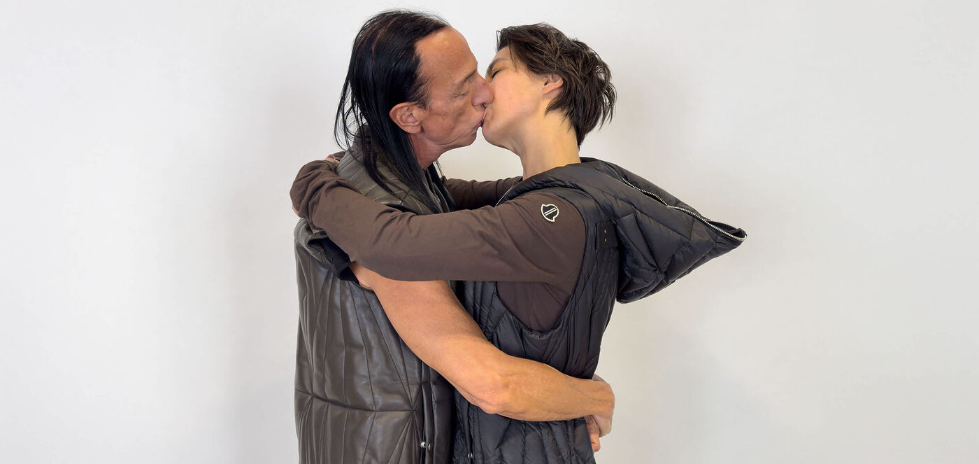 캠페인은 거칠고 솔직한 시선으로 인물을 담아내는 포토그래퍼 유르겐 텔러(Juergen Teller)가 촬영했다. 유르겐 텔러는 릭 오웬스와 그의 아내이자 뮤즈인 미셸 라미(Michèle Lamy), 그리고 자신의 아내이자 크리에이티브 파트너인 도빌레 드리지테(Dovile Drizyte)를 한 프레임에 담아냈다. 서로 키스하는 장면을 포착한 이미지들은 사랑과 열정, 인간적 연결이라는 주제를 전면에 드러내며 컬렉션의 감정적 밀도를 강조한다.