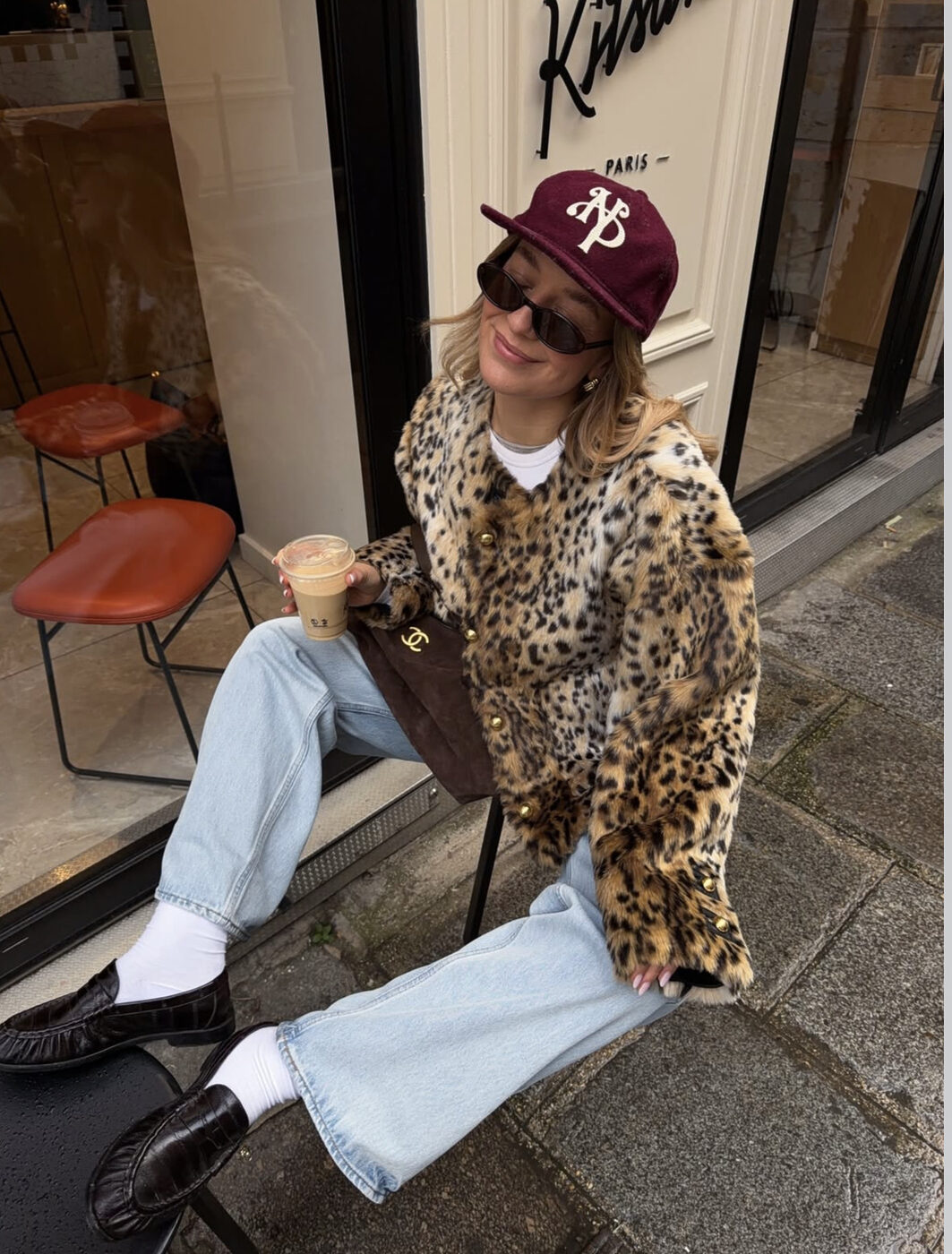 퍼 카디건처럼 존재감 있는 상의를 입을수록, 바지는 오히려 욕심을 덜어내는 게 낫습니다. 연청 특유의 아이시한 색감이 무거운 패턴과 질감을 받아주거든요. 레오퍼드가 과해 보이지 않는 이유도 여기에 있고요. 포인트는 힘의 분산입니다. 하의는 최대한 담백하게 가져가는 식으로요. 여기에 킥이라면, 로퍼와 흰 양말, 볼캡처럼 살짝 힘을 뺀 아이템이겠군요.