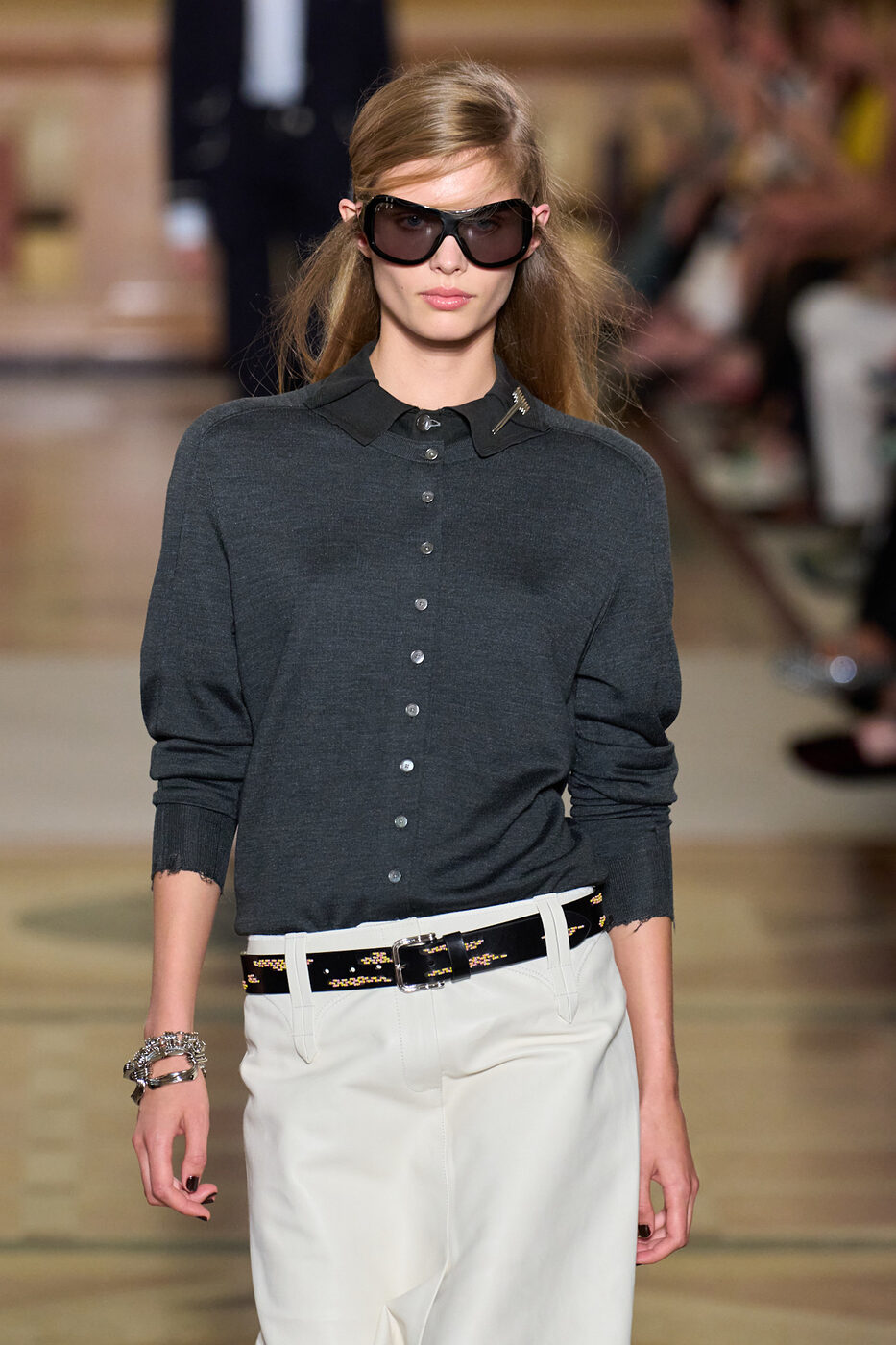 몇 시즌 전이죠, 마치 커다란 곤충 눈을 보는 듯한 발렌시아가의 선글라스를 킴 카다시안이 쓰고 나왔을 때의 충격이란. 도저히 그녀 말고는 쓰지 못할 듯 보였던 둥글고 큰, 얼굴의 반은 가리던 고글 형태의 선글라스가 2026년, 다소 순화된 버전으로 런웨이와 스트리트에 다채롭게 등장했습니다. 특히 생 로랑에서는 바로크 스타일의 화려하고 장식적인 아웃핏에 유연한 라인이 돋보이는 퓨처리스틱한 블랙 선글라스로 이질적인 조합을 선보이기도 했죠. 안 어울리기에 더욱 매력적인 미래지향적인 선글라스와 앤틱한 주얼리의 매칭이 돋보였어요.