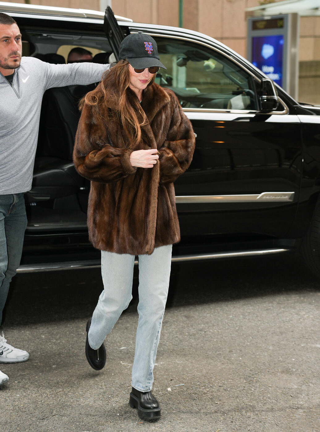 추구미가 미니멀인 다코타 존슨의 뉴에라 스타일링은 어떨까요? 얌전한 브라운 퍼 재킷과 연청으로 이어지는 룩에 로고가 포인트인 모자를 썼군요. 급하게 나올 때 꼭 챙겨야 하는 상비템 노릇은 톡톡히 하면서, 단조로울 뻔한 차림새에 스트릿 무드를 얹어줍니다. 이 말인즉슨 우아한 사모님 같은 스타일링에도 이 모자가 킥이 될 수 있다는 거겠죠. 모자의 로고 테두리와 안 배경이 단색이 아닌 것도 룩을 뻔하지 않게 해준 요소고요.