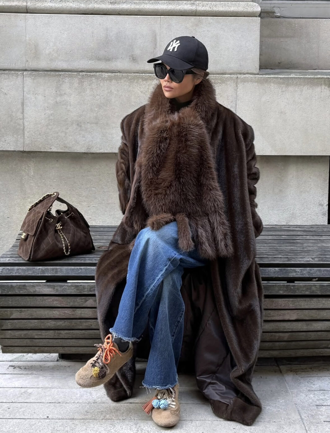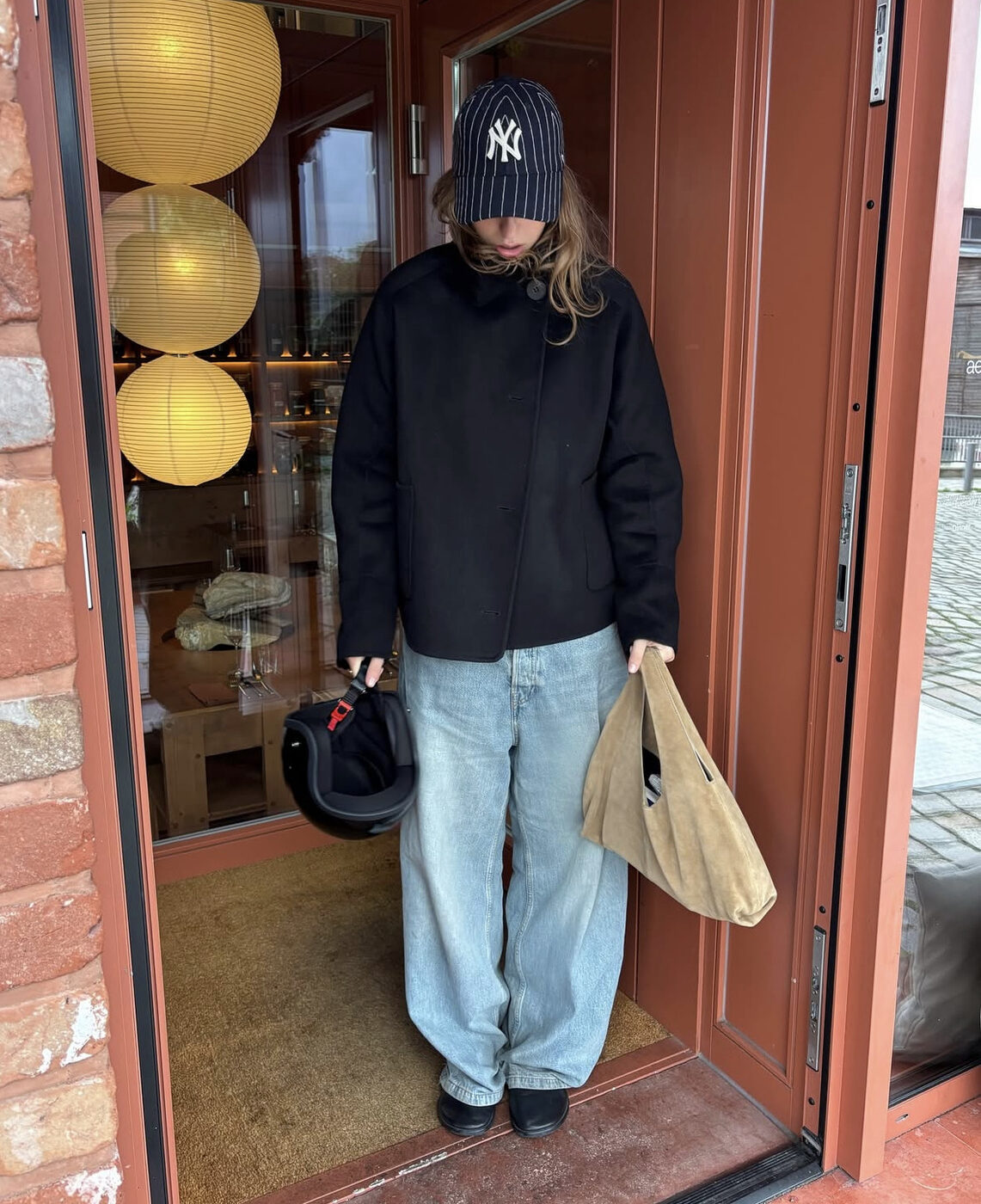 특히 무게감 있는 코트와의 궁합이 눈에 띕니다. 퍼 아우터는 그 자체로 과하게 시선을 끄는 아이템이라, 부담스러워 보이기 쉬운데요. 그 정도를 이 뉴에라 볼캡이 낮춰줄 수 있어요. 모자 하나로 부피감이 작아질까 싶지만, 전체적인 덩치가 줄어드는 효과는 분명 있습니다. 헤어 볼륨을 최소화하면서 해그리드 될 염려를 거두어줄 수 도 있죠. 트렌디함은 덤이고요.
