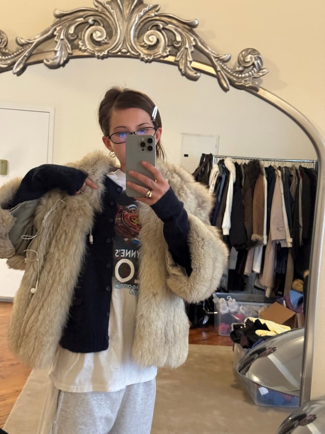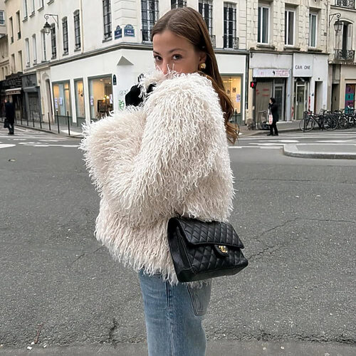 얼마 전 장원영의 인스타그램에서 화제를 모은 ‘흑백요리사2’ 손종원 셰프의 레스토랑 인증샷에서도 포착된 이 조합! 장원영은 베이지 컬러의 퍼 재킷에 그래픽 디자인이 들어간 롱슬리브 티셔츠를 매치했는데요. 과감하게 트인 넥라인과 은은한 시스루 소재의 톱으로 우아한 분위기를 완성했습니다. 캐주얼한 약속부터 비교적 격식 있는 일정까지도 부담 없이 활용할 수 있는 조합이죠.