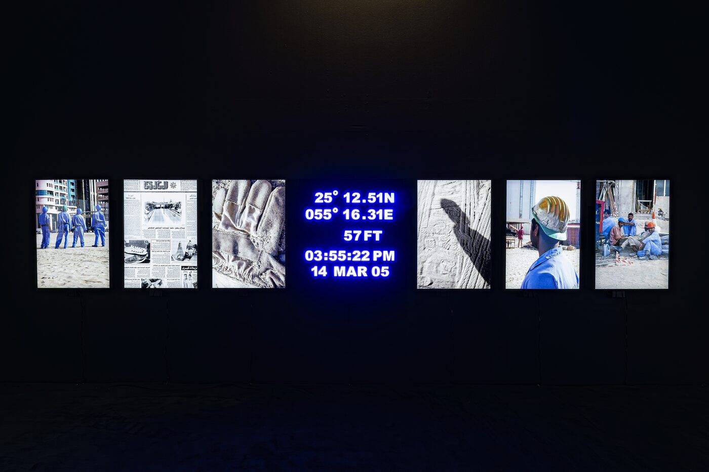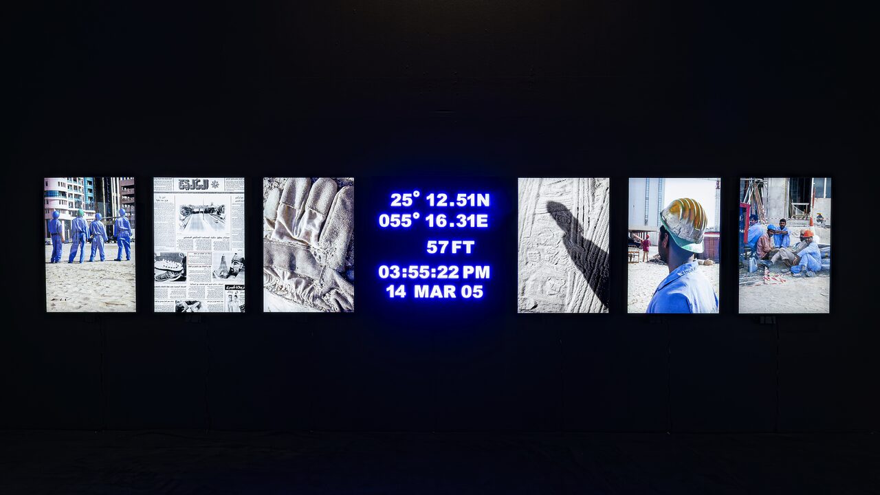 “두바이를 기반으로 활동하는 모하메드 카짐(Mohammed Kazem)은 영상, 사진, 퍼포먼스를 아우르는 독자적인 예술 세계를 구축하며 아랍에미리트 현대미술의 선구자로서 비공식 그룹 ‘The Five’의 핵심 멤버로 활약해 왔다. 특히 그의 작품 ‘창 2003–2005’(2005)은 2년간 하나의 아파트 창문에서 보이는 동일한 풍경을 반복적으로 촬영하여 고층 건물들이 수평선을 잠식해가는 과정을 기록한 설치 작업이며, 컬러 비디오, LED가 내장된 아크릴 패널, 14점의 크로모제닉 프린트로 구성된다. 이는 아랍에미리트의 급격한 도시 개발이 시간, 노동, 공간의 점유를 통해 시각적으로 변모하는 양상을 예리하게 보여준다. 작가는 고정된 시점에서 촬영된 이미지 속에 현장 노동자들의 흔적을 담아냄으로써 물리적 시야를 넘어 상상력의 지평마저 좁혀가는 현대화의 역설을 성찰하고, 관람객에게 아랍에미리트의 일상적 풍경 속에 내재된 소속감과 상실감을 동시에 선사한다.”