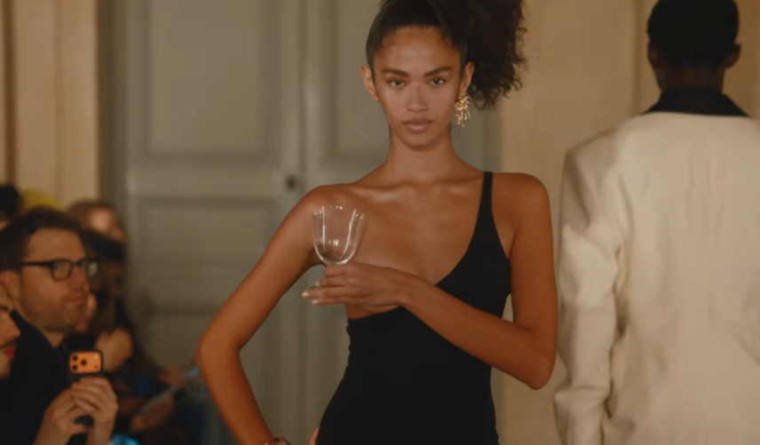 디자이너는 이번 시즌 컬렉션을 구상하는 내내 무드 보드에 헬무트 뉴턴(Helmut Newton)의 흑백 사진 한 장을 붙여두었다고 한다. 팔로마 피카소가 드롭 스트랩 블랙 드레스를 입고 긴 유리잔으로 상반신을 가린 채 서 있는 이미지다. 이 장면은 피날레에서 직접적으로 재현됐다. 밤새 파티를 즐긴 뒤 남은 여운과 느슨해진 애티튜트까지, 시즌 무드를 가장 분명하게 드러낸 장면이었다. ‘패션은 너무 심각할 필요가 없으며, 즐겁고 해방감을 주는 것이어야 한다’는 디자이너의 메시지를 명확하게 요약하는 피날레였다.