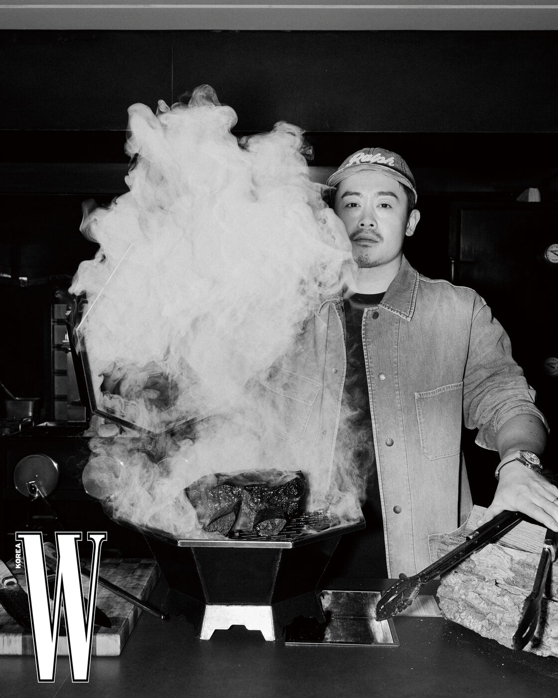 현재 그의 업장이자 1988년에 지어진 목욕탕을 개조한 ‘이목스모크다이닝’에서도 그의 태도는 같다. 어둑한 실내, 핀 조명이 떨어지는 테이블 사이를 오가며 그는 직접 그릴을 열고 고기를 썬다. 동작은 여전히 연극적이고 설명은 길다. “열두 테이블을 다 돌다 보면 두세 시간이 금방 지나가요. 끝나면 진이 다 빠지죠.” 그럼에도 그는 이 과정을 멈추지 않는다. “저는 이걸 연극이라고 생각해요. 결국 기억에 남는 건 맛보다 경험이니까요.” 한때 물을 데우던 공간에서 이제 불을 다룬다. 그는 그 전환 자체를 경험의 일부로 본다. 유용욱이 바비큐 앞에서 끝까지 내려놓지 않는 건, 바로 그런 과정이다. 그래서 그는 여전히 ‘소장’이라 불린다.