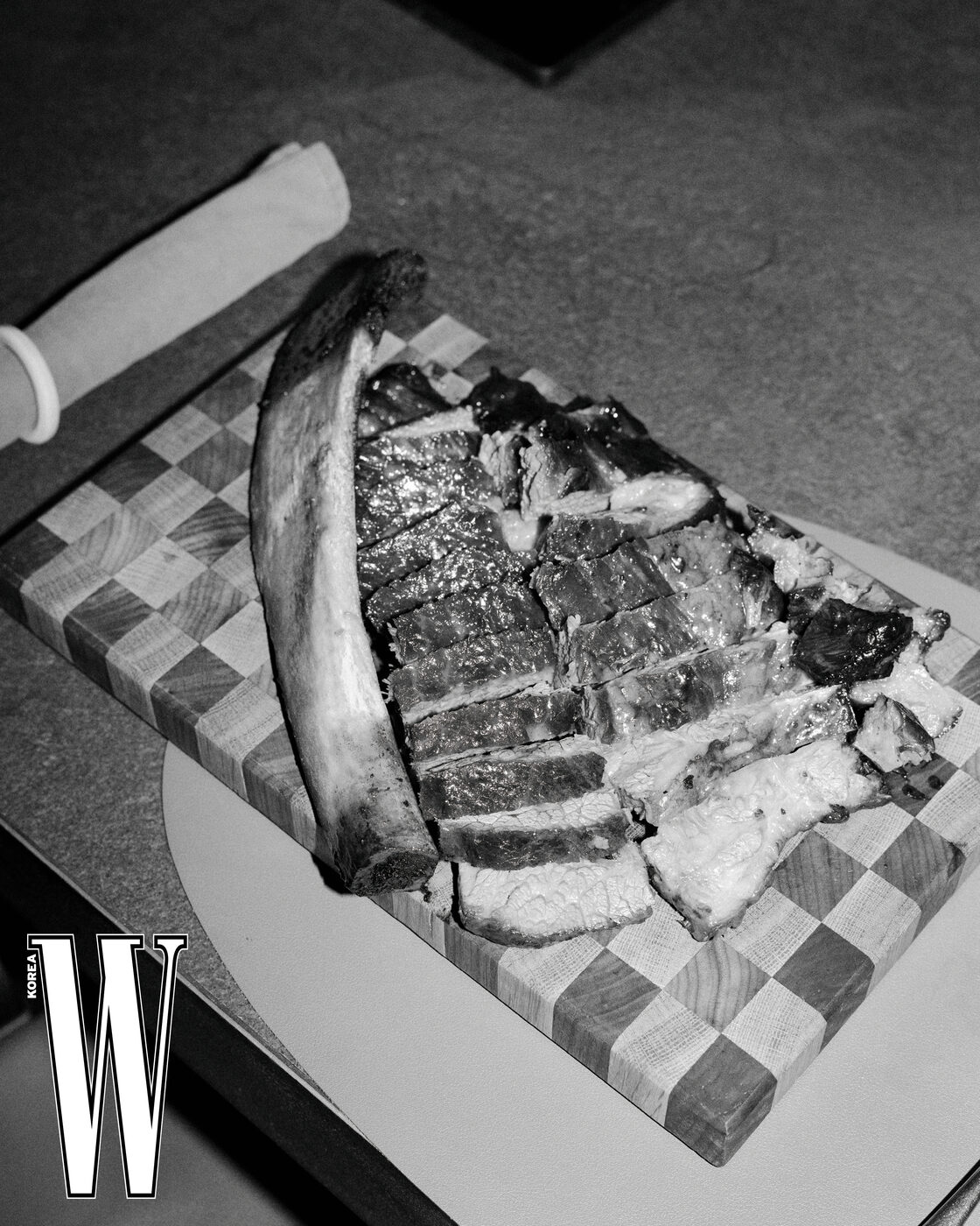 “2020년 11월 남영동에 ‘유용욱바베큐연구소’를 열면서부터예요. 저는 요리 전공자도, 해외 유학파도 아닌 회사원이었잖아요. 바비큐를 좋아하는 사람일 뿐이었죠.” 처음엔 전문성과 자신감의 부족을 가리기 위한 방패 같은 호칭이었다고 그는 말한다. “그런데 어느 순간부터 ‘소장’이라는 말이 제 다이닝을 설명하는 단어가 됐어요. <흑백요리사>를 거치면서는 더 그렇고요. 지금은 그냥, 마음가짐의 문제라고 생각해요. 그리고 ‘소장’이라는 호칭이 어딘가 더 멋있지 않나요?(웃음)”