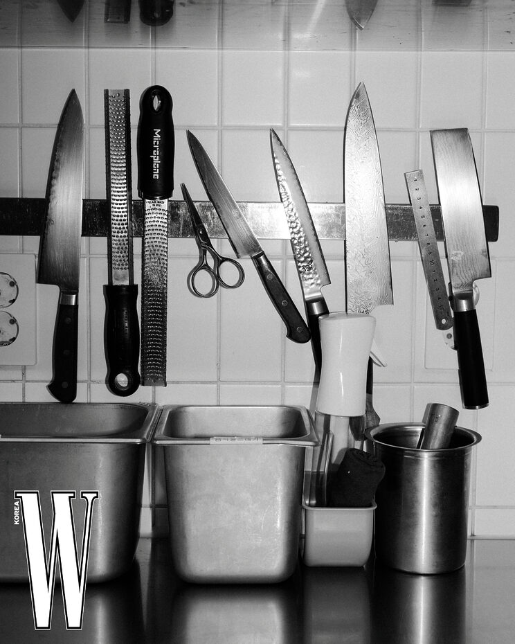 한편, 그가 자주 언급하는 레스토랑은 덴마크 코펜하겐의 ‘알케미스트’다. 라스무스 뭉크가 이끄는 이곳은 요리를 미학이 아니라 질문의 도구로 다룬다. “굳이 예쁜 접시에 담으려 애쓰지 말고, 음식을 볼 땐 재료의 눈을 보라.” 그 문장을 이찬양은 꽤 오래 곱씹고 있다. 요리를 더 먹기 좋게 만드는 대신, 먹는 방식을 흔들어보는 것. 이찬양이 끝내 놓지 않으려는 건 바로 그 질문이다.