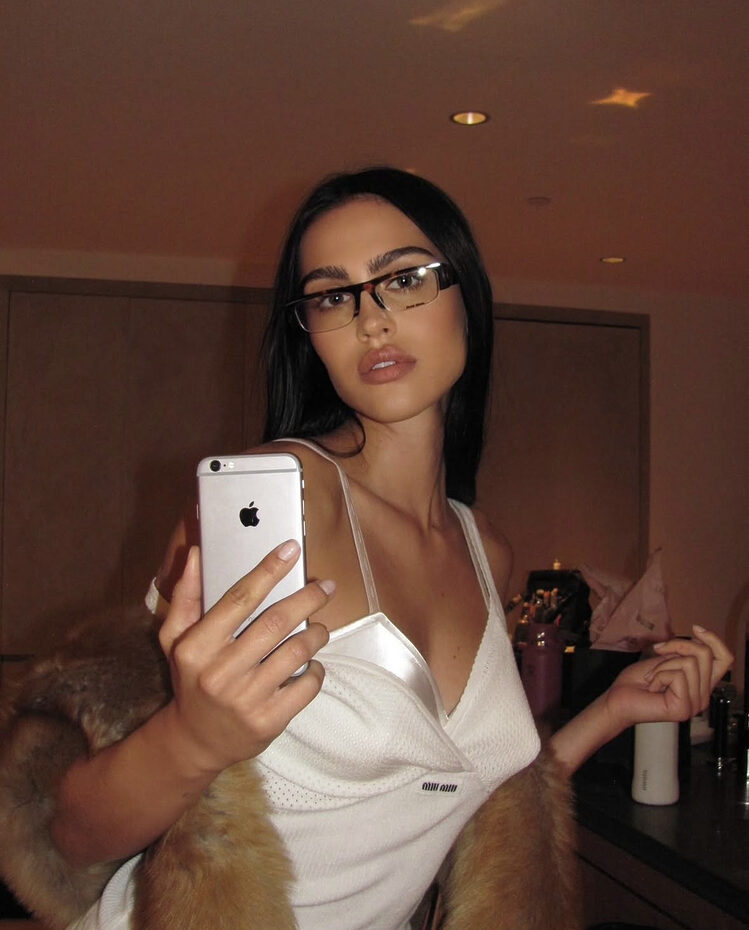 올블랙 차림에 깊게 파인 이너, 스모키 메이크업과 블러셔까지 꽤나 힘을 준 스타일링이지만, 여기서 마지막에 더한 안경이 벨라 하디드의 킥일겁니다. 포멀함을 살짝 끌어올리면서 전체적인 분위기를 세련되고 지적인 쪽으로 가져가는 역할을 자처하고 있기도 하네요. 꾸민 티는 나지만 과해 보이지 않는 이유도 이것이겠죠. 덕분에 글래머러스한 요소가 있어도 도회적인 터치로 마무리되고요.