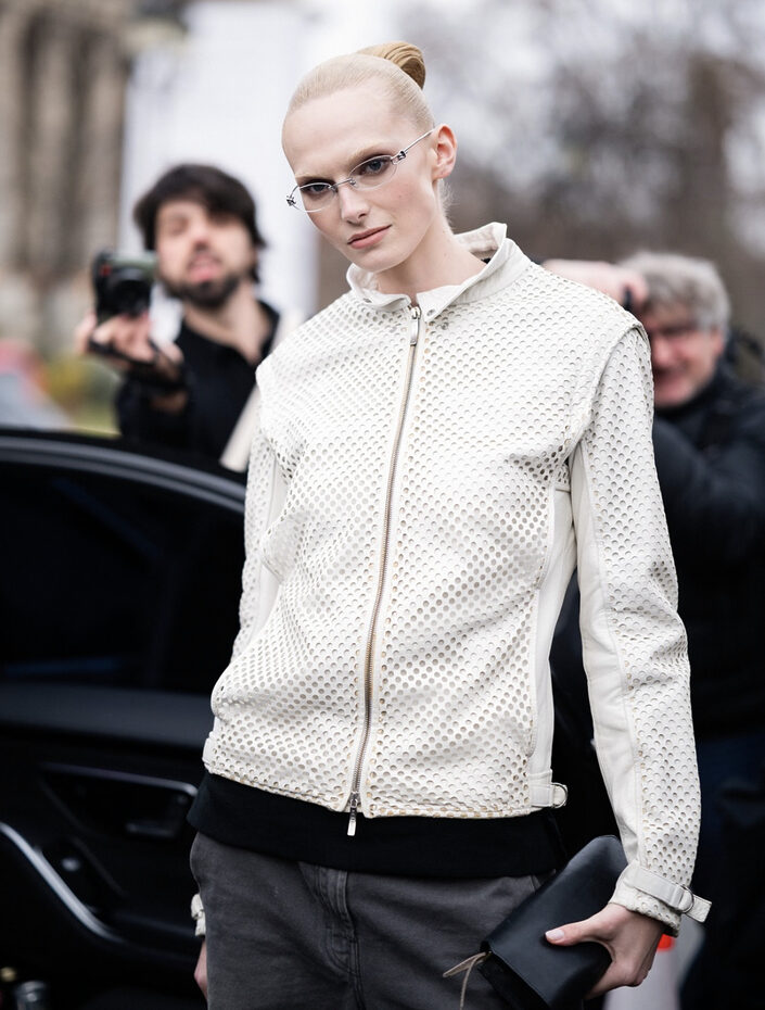 켄달 제너가 딱 붙은 V넥 원피스에 머리까지 올백으로 넘긴 다음, 안경을 마지막에 더할 줄 누가 예상했을까요. 드레시하고 페미닌한 무드의 정석 같은 옷차림에, 다소 금기처럼 느껴질 법한 궁서체 안경이 들어온 것인데요. 한층 클래식한 룩이 연출됐습니다. 그 덕에 각 아이템보다는 전체적으로 차분하고 얌전한 분위기가 먼저 눈에 보이고요. 안경이란 존재가 얼마나 지루할 틈 없이 스타일링이 가능한지 매력을 다시 한번 각인 시킨 켄달 제너입니다.