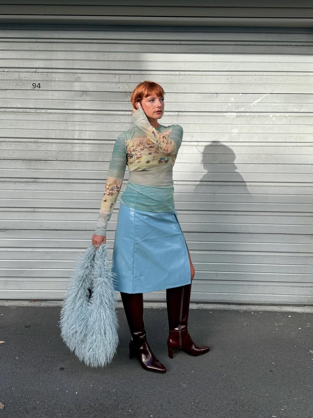 활용하는 방법에 따라 느낌이 달라지는 컬러이기도 해요. 같은 톤이라도 소재가 바뀌면 분위기가 또 달라지거든요. 예를 들어 코튼 셔츠는 깨끗하고 단정한 무드를, 니트는 부드럽고 편안한 인상을, 새틴이나 실키한 텍스쳐는 좀 더 페미닌하고 여성스러운 느낌을 만들어줘요. 그래서 아이시 블루를 고를 때는 색감뿐 아니라 어떤 질감으로 입을지 함께 생각해보면 훨씬 다양하게 스타일링을 할 수 있어요.