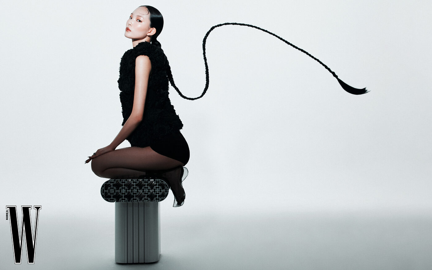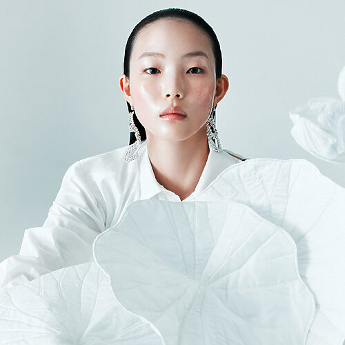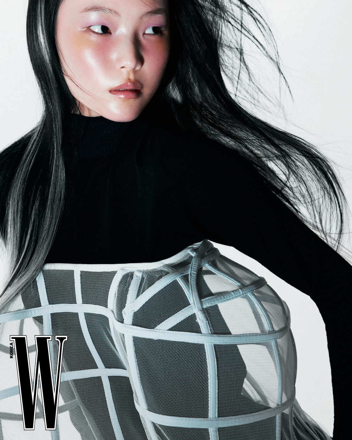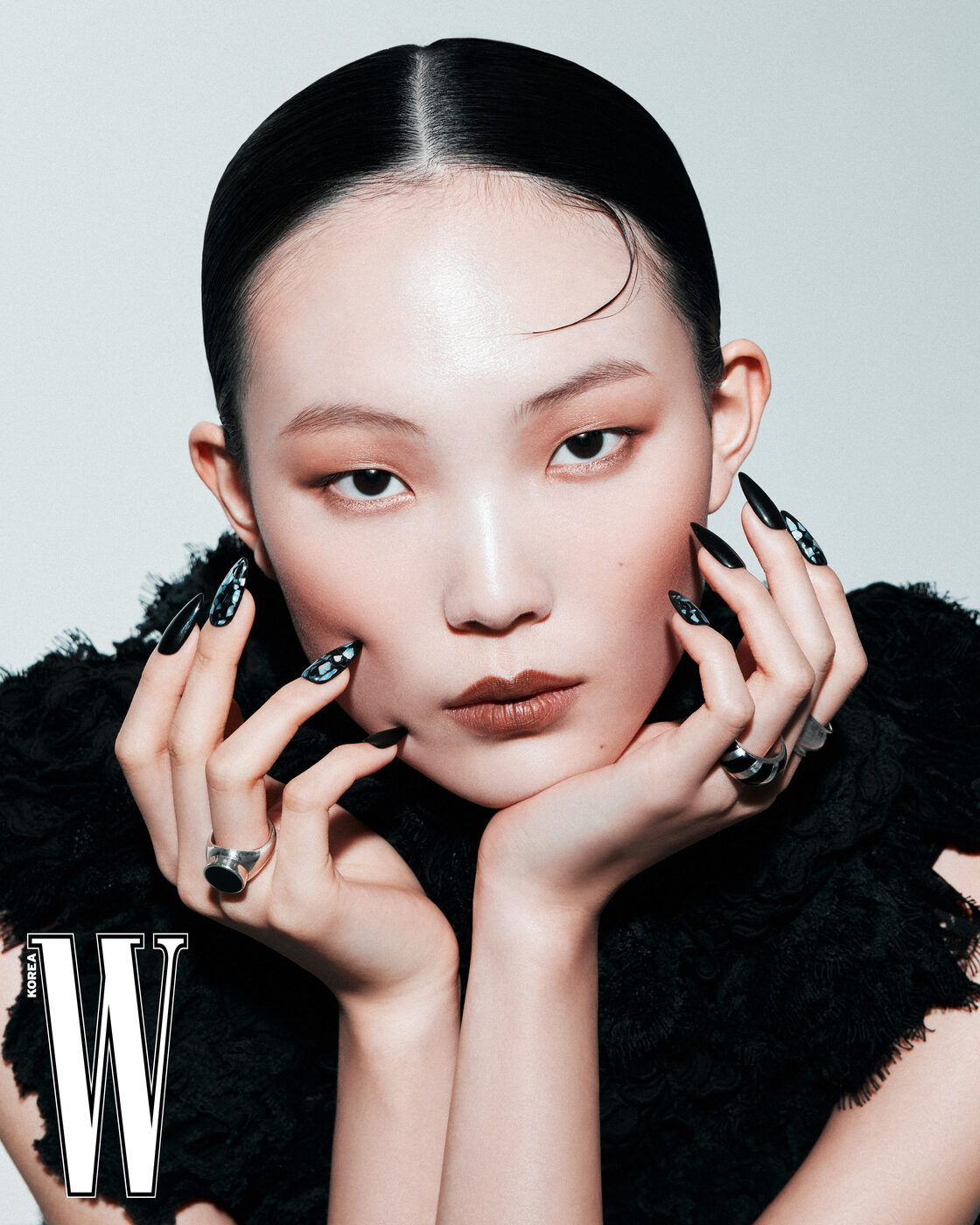 파운데이션에 비디비치 ‘스킨 일루미네이션 생크림 톤업’을 섞어 발라 K-뷰티의 대명사, 유리알처럼 매끈한 광채가 흐르는 글라스 스킨을 연출했다. 눈매는 디올 ‘디올쇼 5꿀뢰르(앰버 펄)’의 베이지 섀도를 넓게 발라 깨끗한 톤으로 정리하고, 볼 중앙과 입술에 모두 나스 ‘더 멀티플(베드 해빗)’을 더해 생기 있는 안색을 연출했다. 마지막으로 보다 과장된 촉촉함을 연출하기 위해 메디큐브 ‘콜라겐 나이트 랩핑 마스크’를 더했다.