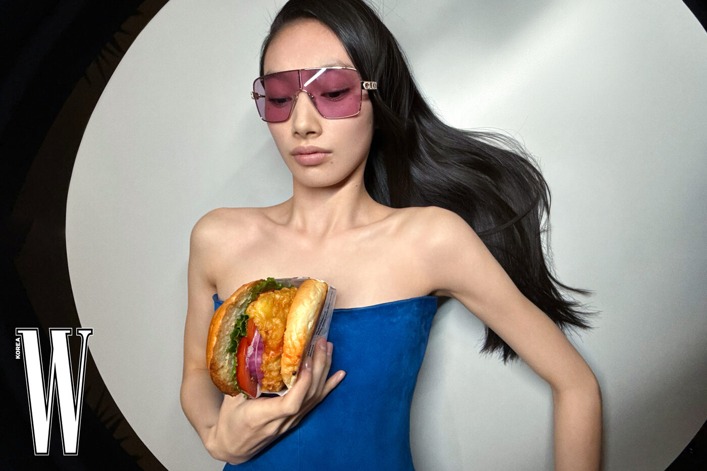선글라스는 80만원대로 구찌, 파랑 스웨이드 드레스는 1천1백7만원대로 가브리엘라 허스트 제품.
