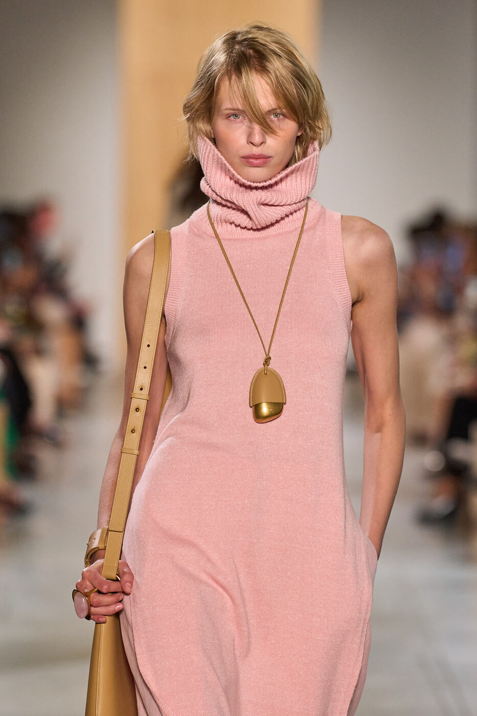 토리 버치, 마이클 코어스, 랄프 로렌 등 미국의 실용주의적 디자이너들이 선보인 펜던트가 시선을 사로잡습니다. 그 아이템의 종류 또한 다채로워졌어요. 마이클 코어스와 TWP의 런웨이 에서는 모던하고 심플한 디자인의 오피스 룩에 작은 파우치나 안경을 목에 걸고 나와 효율성의 극치를 선보였죠. 고급스러운 레더와 조형적인 골드 메탈의 조화가 돋보이기도 했어요.
