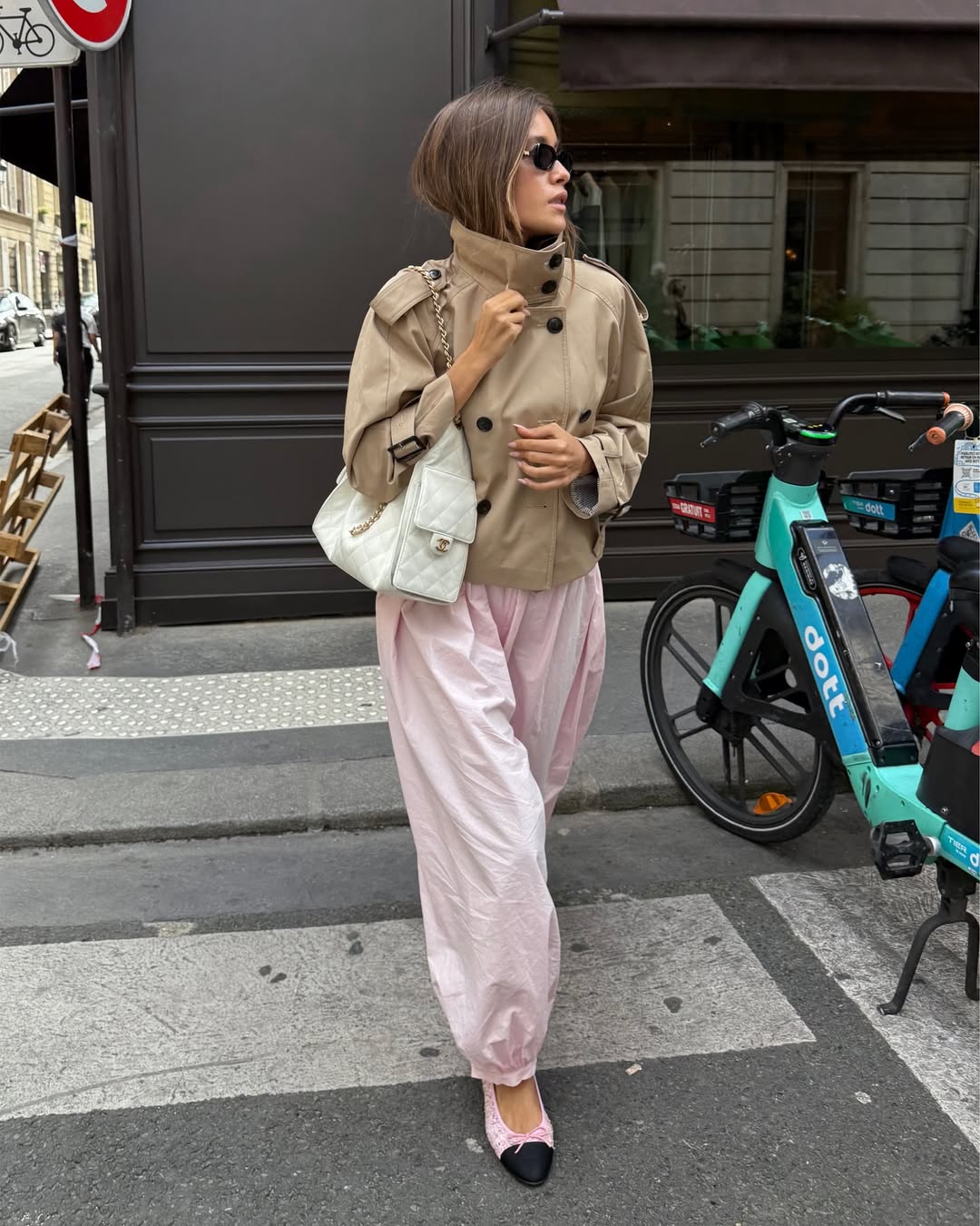 서울을 방문한 인플루언서 린다 슐츠의 룩에서도 이 조합을 발견할 수 있었는데요. 전체적으로 항아리 형태로 곡선을 그리며 떨어지다 발목이 좁아지는 실루엣의 팬츠에 마르지엘라의 타비 플랫 슈즈를 신은 그녀. 그레이 컬러에 백과 슈즈만 하늘색으로 맞춰 과하지 않은 컬러 포인트를 더한 것 역시 눈길을 끕니다. 운동화를 신어야 할 곳에 플랫 슈즈를, 데님 팬츠를 입어야 할 곳에 편안한 조거 팬츠를! 이 뒤틀린 공식을 잊지 마세요.