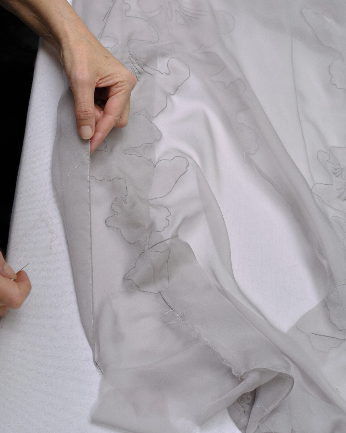 샤넬의 아이코닉한 실루엣은 한층 가볍고 투명한 물성으로 재해석됐다. 공기처럼 가벼운 실크 모슬린 소재의 오프닝 룩은 샤넬 슈트의 가장 순수한 형태를 상기시켰다. 깃털과 오간자로 완성된 룩은 하이쿠의 새처럼 자유롭게 유영했다. 모델이 걸음을 옮길 때마다 빛이 원단 사이로 스며드는 장면은, 고대에 양피지 위에 새 글을 덧써도 지워낸 옛 문장이 희미하게 다시 떠오르는 ‘팔림프세스트(Palimpsest)’를 연상시켰다. 이처럼 마티유 블라지는 가브리엘 샤넬의 위대한 유산 위에 동시대적 감각을 덧입히며 샤넬의 새로운 시대를 열었다. 가벼운 위트도 돋보였다. 컬렉션 곳곳에는 버섯과 새 모티프가 자수, 깃털, 비즈 등 정교한 디테일로 새겨졌다. 한편, 티셔츠와 데님처럼 보이는 룩은 실크 모슬린으로 제작해 착시 효과를 준 것으로 마티유 블라지 특유의 유희를 느끼게 했다. 색채는 절제된 가운데 깊이 있게 펼쳐졌다. 블랙과 진주빛 화이트를 중심으로, 모스 그린과 더스티 로즈 등 자연에서 영감을 얻은 뮤트 파스텔 톤이 베이스를 이루었다. 여기에 새의 깃털을 연상시키는 일렉트릭 블루와 선명한 옐로우가 더해지며 컬렉션에 생동감을 불어넣었다. 이 모든 시도는 르사주, 르마리에, 몽텍스 등을 포함한 le19M 공방의 수작업을 통해 극한의 완성도로 완성됐다. 플루(Flou) 아틀리에의 유려한 드레이핑과 딸리에(Tailleur) 아틀리에의 정교한 테일러링이 더해져, 샤넬만의 사부아 페르(Savoir-Faire)를 다시 한 번 증명했다.