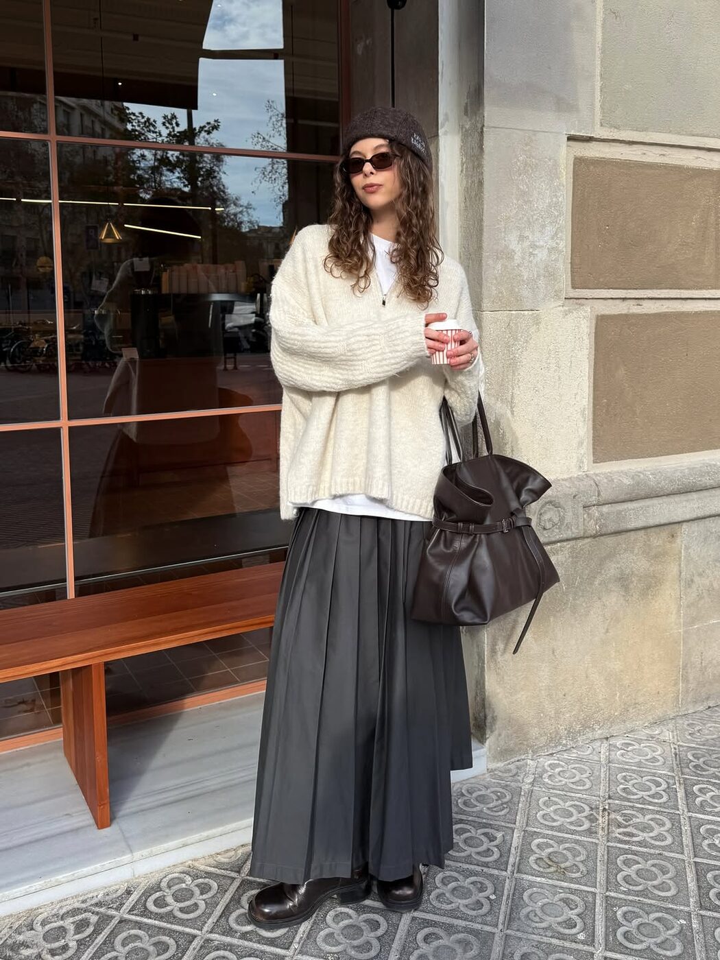 클라우드 댄서의 순수하고 편안한 매력은 울, 캐시미어 같은 포근한 소재와 만났을 때 비로소 진가를 발휘합니다. 특히 추운 날씨에는 클라우드 댄서 컬러의 니트 톱 한 벌이면 따스한 포옹을 선사하는 것처럼 온화한 느낌의 룩을 완성할 수 있죠. 평소 사이즈보다 다소 넉넉한 오버사이즈 니트로 보호본능을 자극하거나 몸에 딱 맞는 카디건을 상의로 입어 페미닌 무드를 강조하세요.