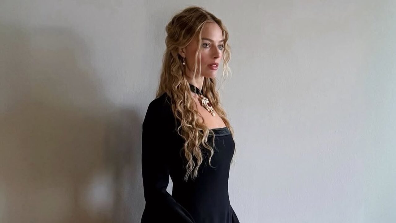 이번 프레스 투어는 2023년 영화 ‘바비’ 당시 호흡을 맞췄던 스타일리스트 앤드류 무카말과 함께 합니다. 첫 공식 일정에서 마고 로비가 선택한 룩은 로베르토 카발리의 2026 리조트 컬렉션의 블랙 미니 드레스. 가로로 넓게 오픈된 스퀘어 네크라인에 더해진 벨벳 트리밍과 플레어드 커프스로 빅토리아 시대의 고딕적이고 로맨틱한 분위기를 완성했습니다. 여기에 화려한 펜던트가 달린 초커와 아찔한 높이의 하이힐로 룩의 긴장감을 한층 끌어올렸죠.