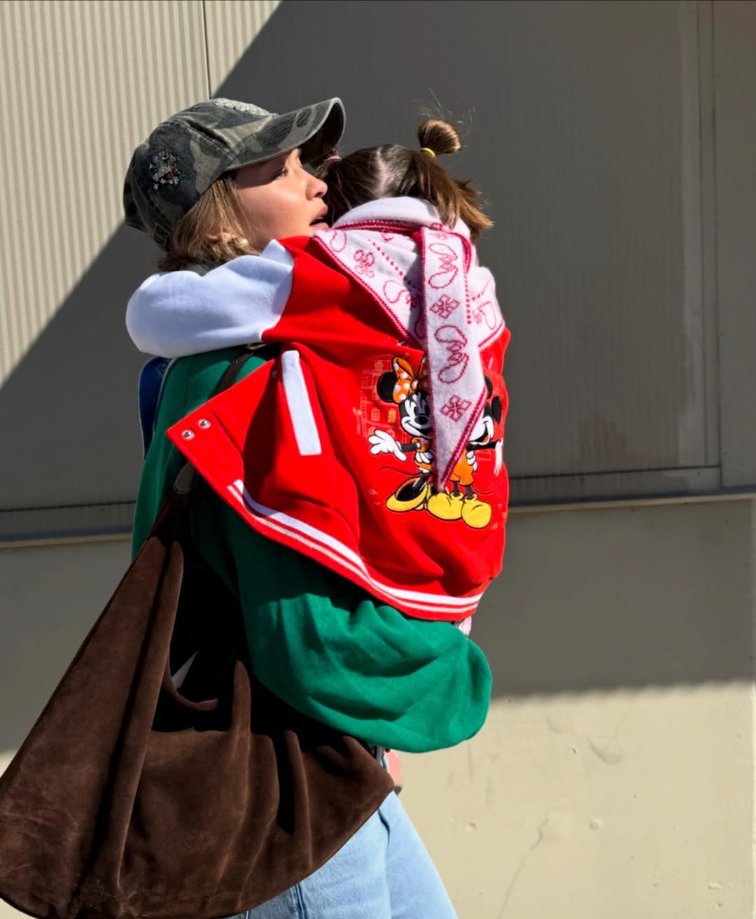 디즈니랜드를 방문한 지지 하디드는 미키&미니 하우스가 그려진 스웻셔츠에 청량한 하늘색 페이즐리 패턴의 반다나를 둘러 탐험가 바이브의 놀이공원 룩을 완성했습니다. 평소 통통 튀는 색를 좋아하는 그녀의 취향 다운 컬러 선택지였죠. 이 반다나에는 귀여운 비밀이 하나 숨겨져 있는데요. 지지의 사랑스러운 딸 카이 역시 레드가 포인트로 들어간 반다나를 둘러 엄마와 커플 아이템을 맞춘 것이죠.