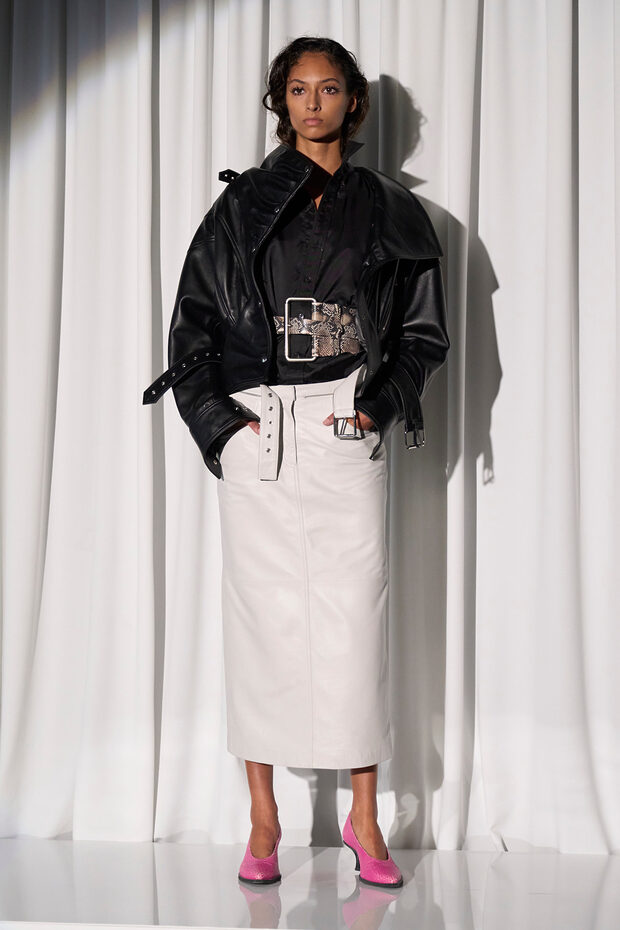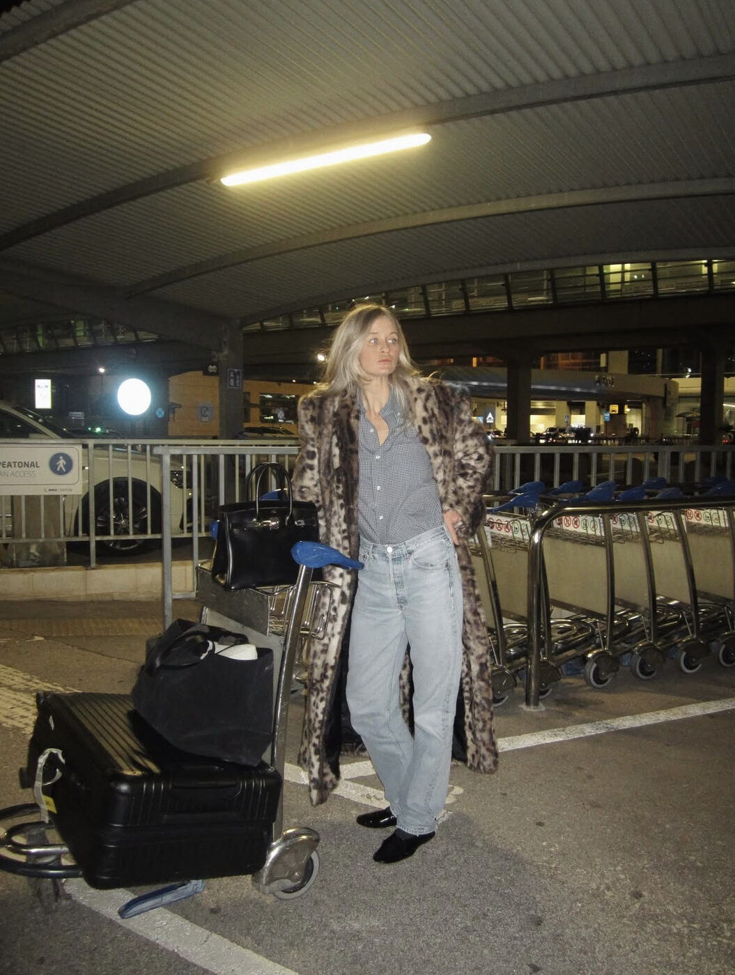 리얼웨이에서는 벨라 하디드의 Y2K 무드를 참고하면 되겠더군요. 레오퍼드는 미니 바게트 백 하나로만 등장하고요. 재킷과 이너는 블랙 앤 화이트로 톤을 맞춰 깔끔하고 시크하네요. 이렇게 컬러가 단조로워질 때, 옷 대신 액세서리로 패턴을 가져오는 명민한 방법을 써먹어보세요. 오히려 더 세련된 터치가 될 겁니다.
