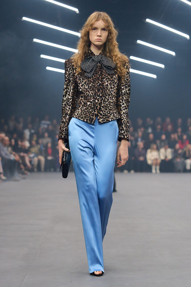 발렌티노의 2026 S/S 컬렉션은 1970년대와 80년대 무드를 교차시키며 출발합니다. 롱앤린 실루엣과 테일러링, 레이스와 실크, 시퀸과 벨벳 같은 소재가 주를 이뤘죠. 특히 흥미로운 건 애니멀 패턴을 접목시킨 방식입니다. 프린팅 대신, 스팽글과 비즈를 촘촘히 채운 자수로 패턴을 표현했거든요. 가까이서 보면, 그저 수공예로 만든 시퀸 재킷 같죠. 반면 실루엣은 미니멀합니다. 장식은 풍부하지만 형태감은 절제시킨 것인데요. 애니멀 패턴을 입고 싶은데 과해 보일까 염려됐다면, 이런 접근법도 힌트가 될 거예요.
