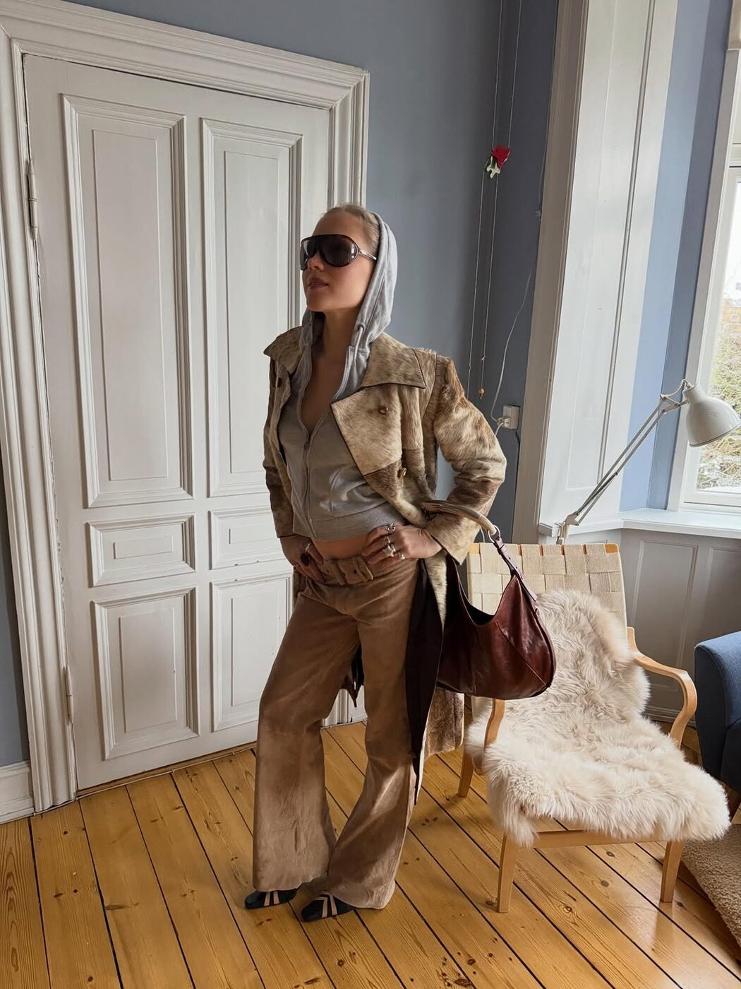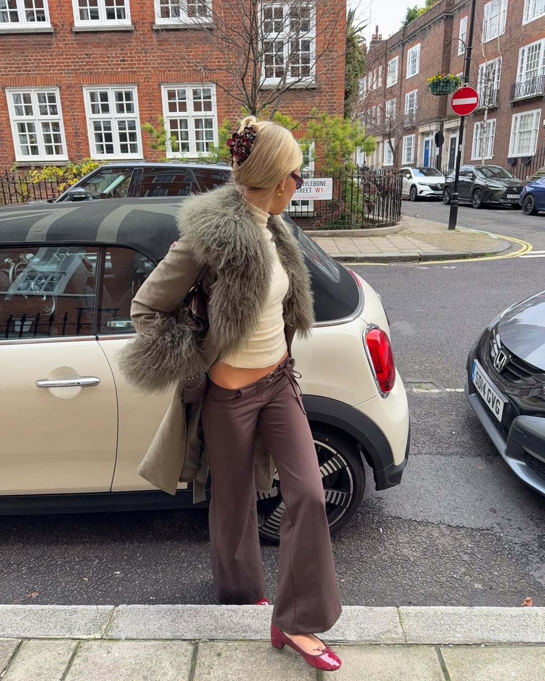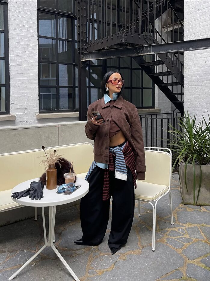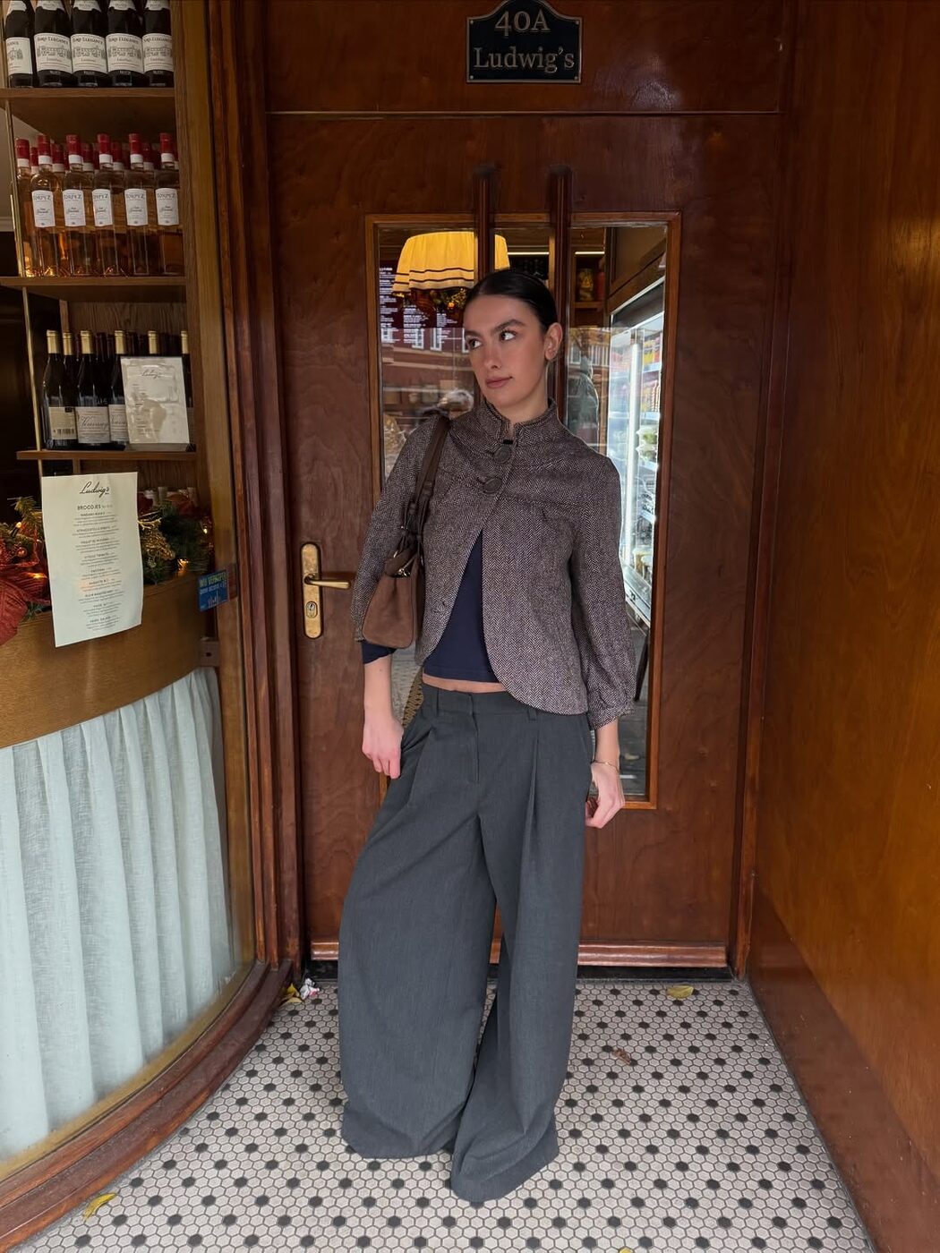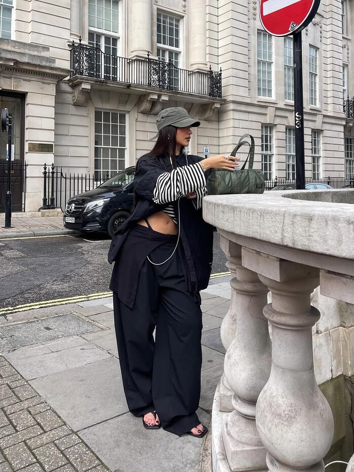데님으로 로우라이즈를 경험했다면, 이번에는 여유 있는 실루엣의 팬츠로 넘어가보는 건 어떨까요? 허리는 낮게 시작하되 아래로 넉넉하게 떨어지는 와이드 슬랙스나 루즈핏 팬츠는 로우라이즈 특유의 느낌을 일상에서 가장 자연스럽고 세련되게 풀어낼 수 있는 아이템이에요. 상의는 짧은 기장의 티셔츠나 숏한 재킷을 함께 입으면 쿨한 분위기를 살리면서도 비율도 한층 더 균형있게 만들어줘요.