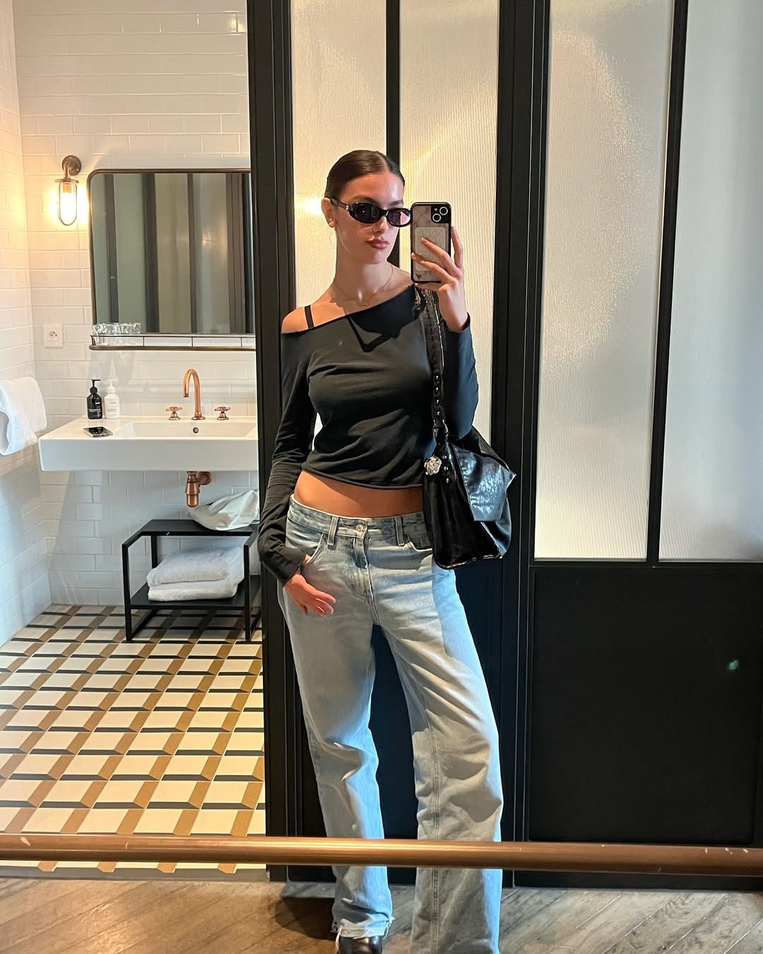 최근 트렌드를 보면 로우라이즈가 치골 가까이까지 내려가는 과감한 형태로 나오지만 그만큼 낮춘 실루엣을 실생활에서 입기에는 무리가 있죠. 일상에서는 배꼽 아래에서 자연스럽게 시작하는 정도면 충분합니다. 그 정도 높이로만 입어도 실루엣은 가볍고 여유로우면서 부담스러운 노출없이 로우라이즈 특유의 쿨한 분위기는 제대로 살릴 수 있거든요.
