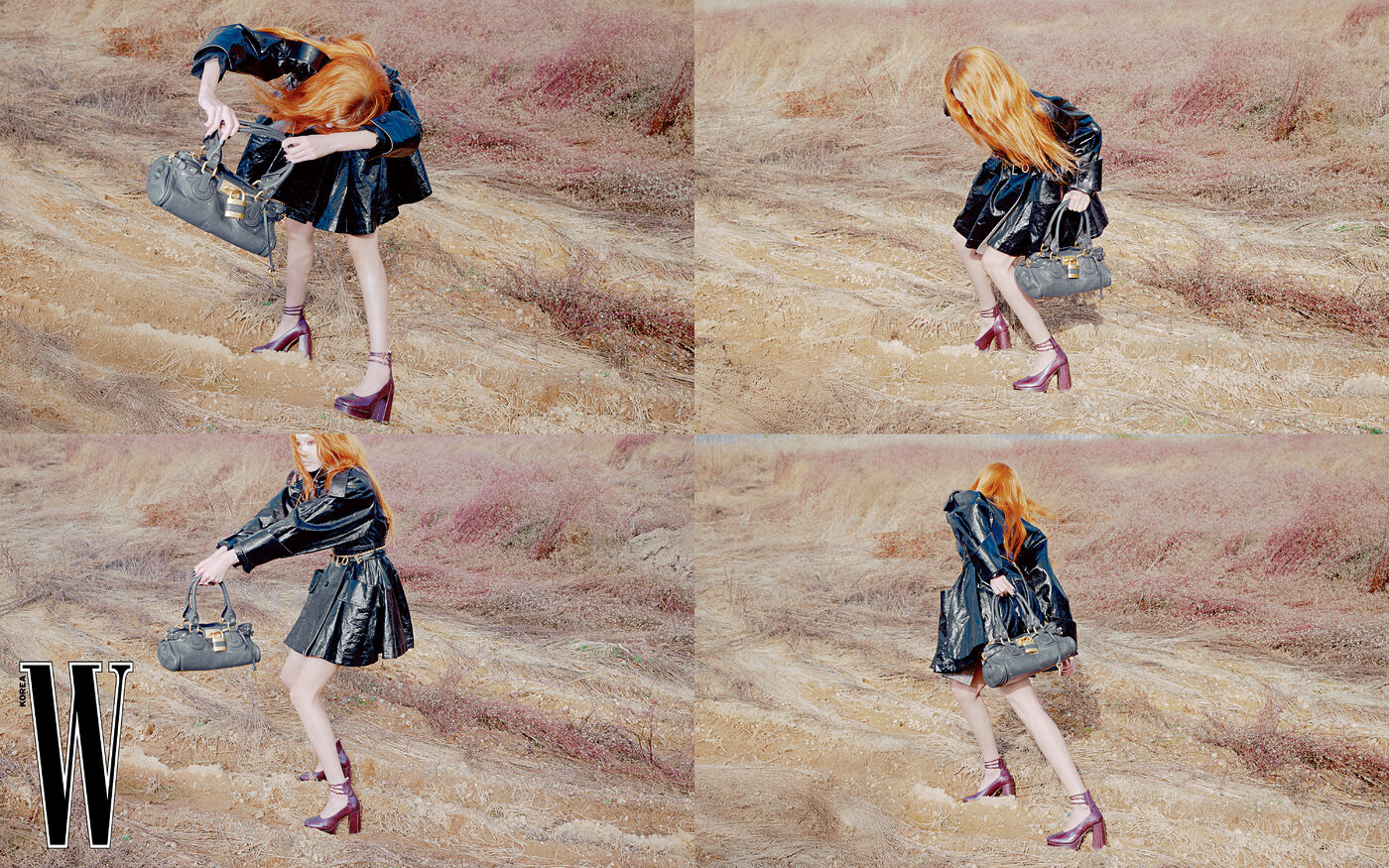 글로시한 트렌치코트는 6백8만원, 체인 벨트는 1백38만원, 백은 3백83만원, 슈즈는 2백48만원으로 끌로에 제품.