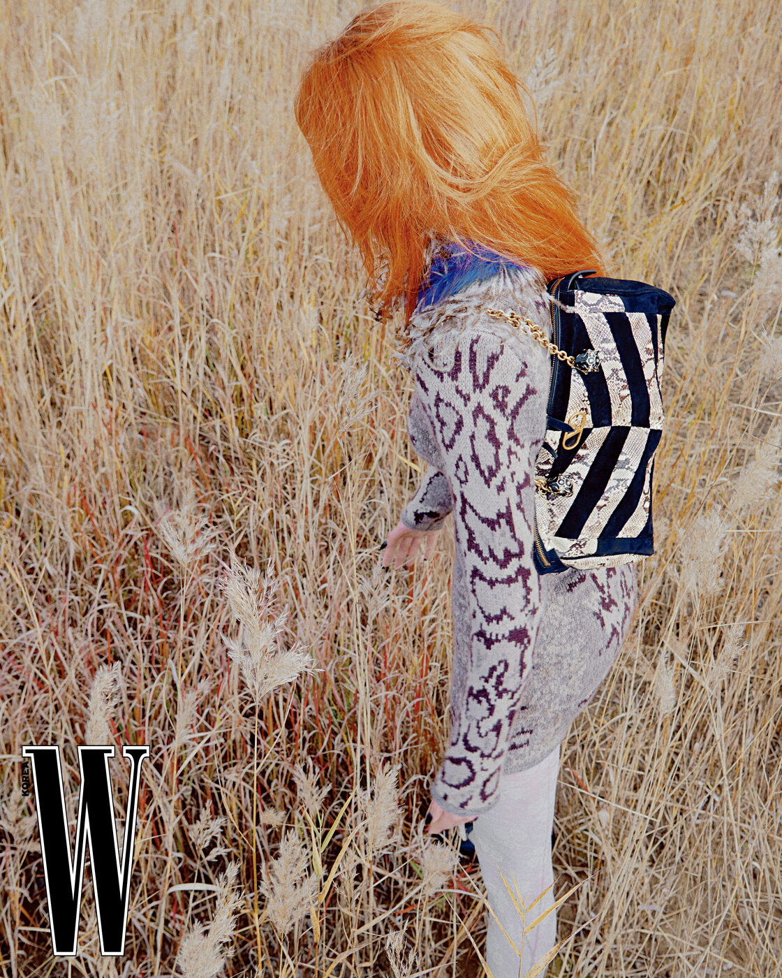 야생적인 니트 드레스는 7백90만원, 플로럴 타이츠는 87만원, 체인 백은 가격 미정으로 발렌티노 제품.