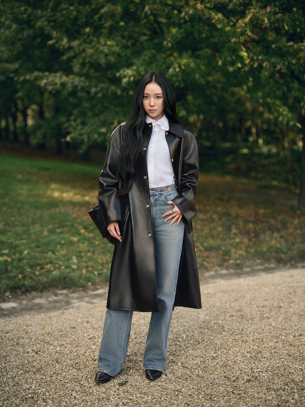 너무 헐렁한 배기 진보다는 스트레이트 혹은 플레어 라인의 청바지라면 그 효과는 더욱 뛰어납니다. 다리는 길고 더 날씬하게 만들어줘요. 상의는 최대한 기본 스타일의 심플한 아이템들이 가장 시크하고 스타일리시한 룩을 완성합니다.