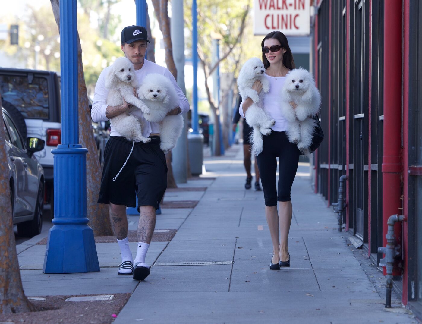 최근 데이비드와 빅토리아 베컴 그리고 형제들간의 불화로 인해 공개적으로 가족들과 절연을 선언한 브루클린 베컴과 니콜라 펠츠. 이를 의식한 듯 한동안 대외적인 활동은 자체하고 소소한 일상을 보내고 있죠. 바로 어제, 비버리 힐즈에서 이 젊은 부부는 앙증맞고 사랑스러운 반려견들과 함께 화이트 앤 블랙, 모나미 룩을 선보였어요.