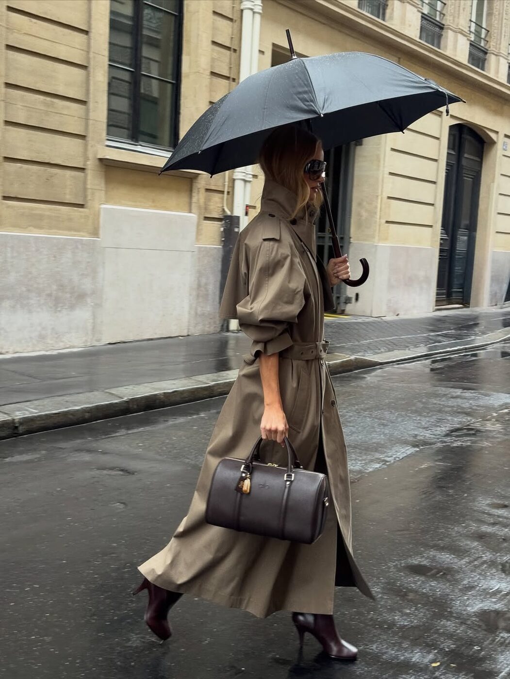 힙하면서도 클래식한 무드를 사랑하는 그녀에게서 트렌치코트를 빼놓을 순 없습니다. 차분한 브라운 톤의 트렌치코트를 선호하는 로지는 주로 빅 토트백과 선글라스로 자신의 추구미를 드러내는 편이에요. 이때도 역시나 단정한 실루엣보다는 깃을 높게 세우고 허리를 더욱 잘록하게 조이는 등 풍성한 실루엣을 연출하죠.