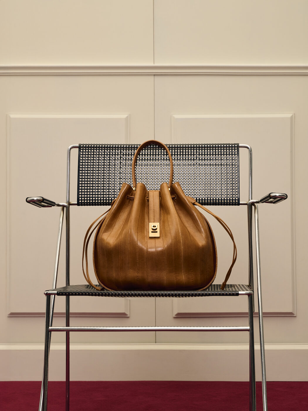 이번 캠페인의 중심에는 브랜드의 아이코닉한 허그(Hug) 백이 자리한다. 버건디 컬러의 허그 백과 내부에 레드 컬러 디테일을 더한 블랙 허그 백, 블랙 안감을 더한 블루 컬러의 소프트 허그 백이 로맨틱한 무드를 완성한다. 여기에 허그 버클로 여밈을 완성한 내추럴 컬러 가죽 버킷백도 함께 선보이며, 부드럽게 포옹하는 실루엣을 강조한다.