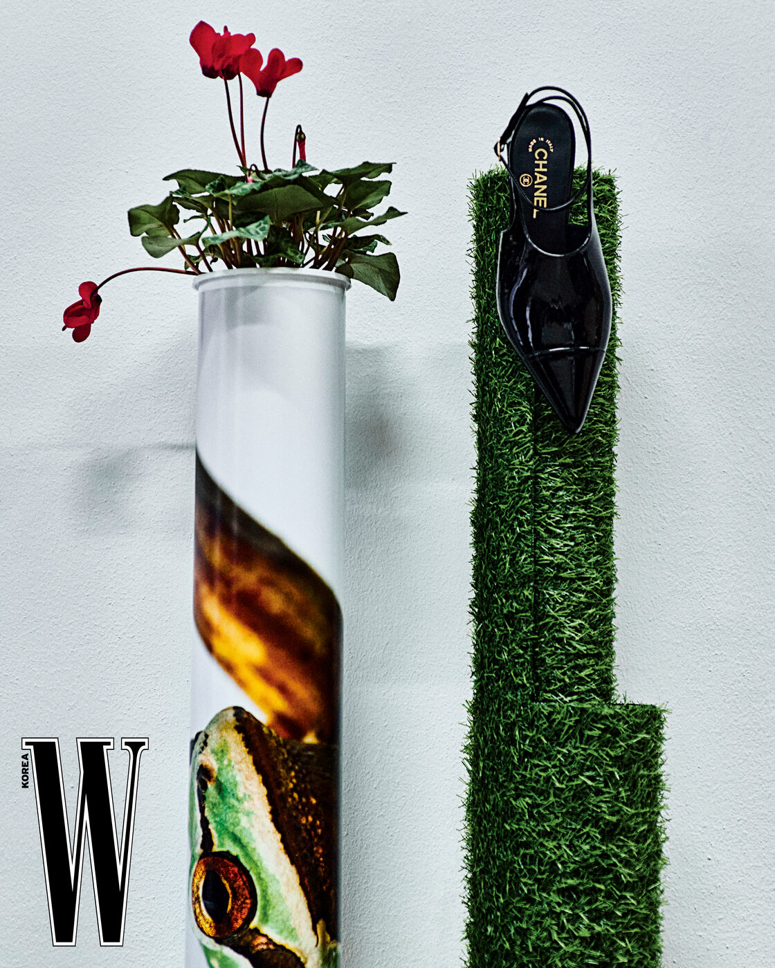 페이턴트 가죽 소재의 슈즈는 샤넬 제품.