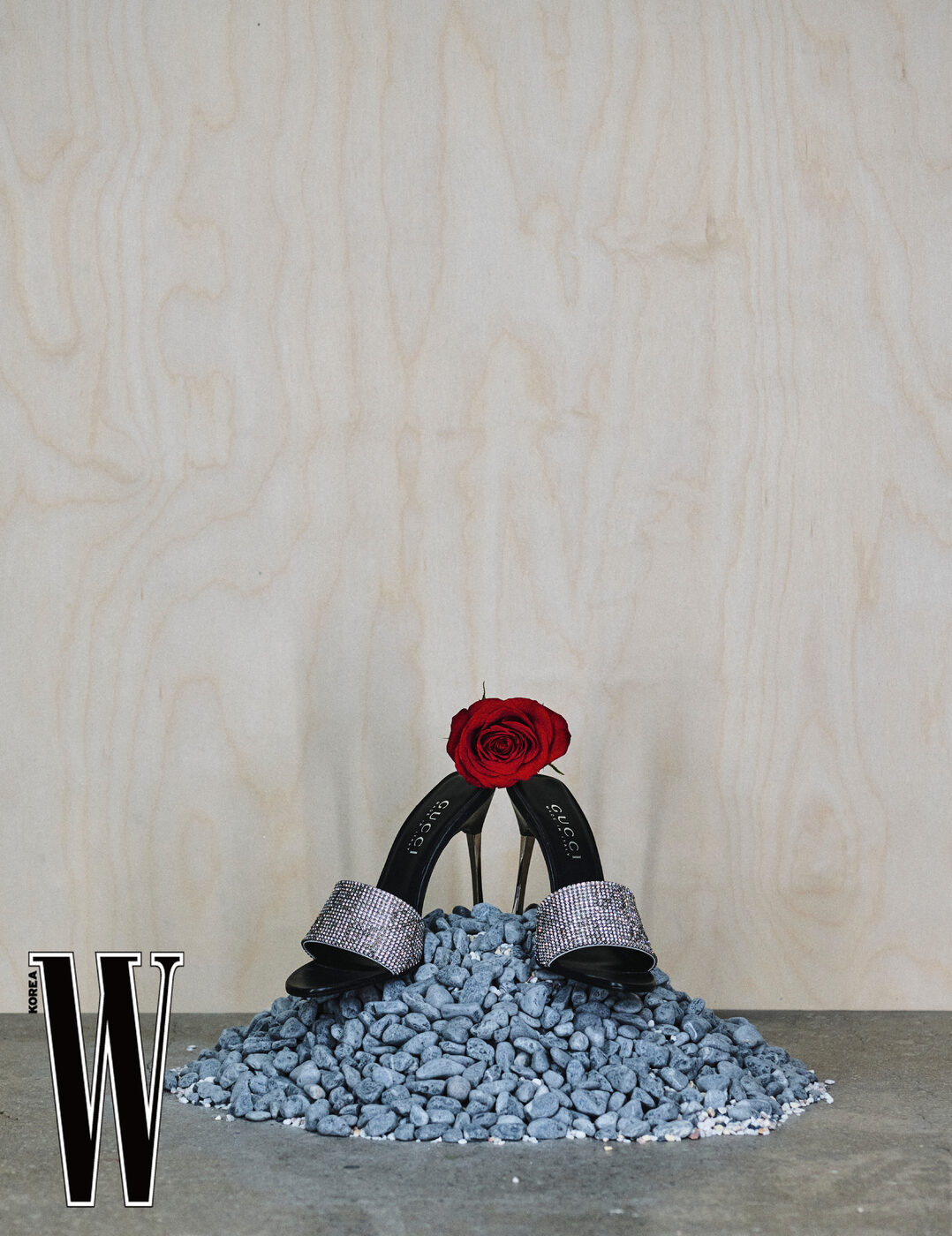 크리스털로 로고를 수놓은 뮬은 구찌 제품.