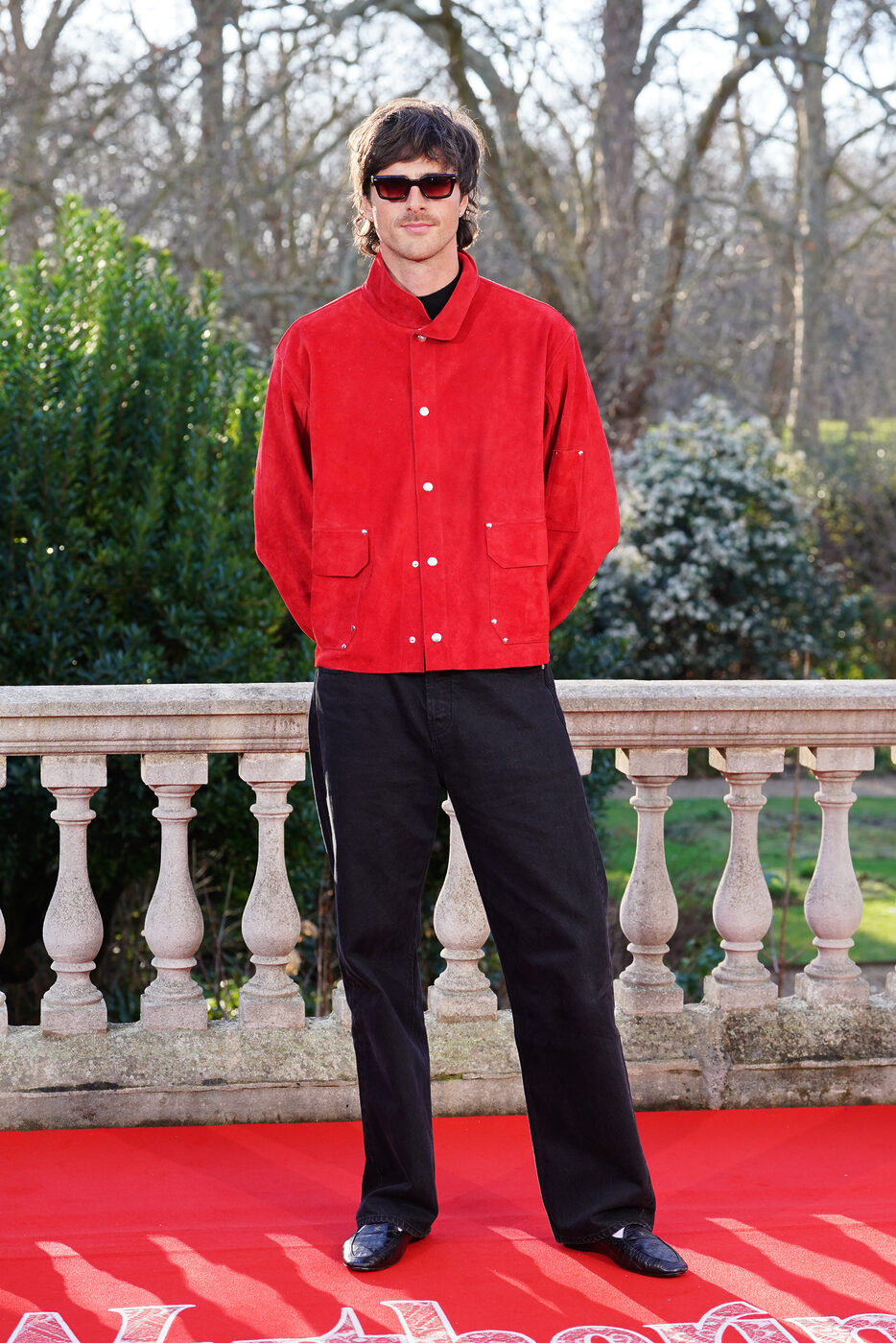 이번엔 새빨간 재킷으로 시선을 사로잡은 지난주 런던 포토콜 현장으로 돌아가 보겠습니다. 진하고 채도 높은 레드 스웨이드 재킷은 앤티크 감성의 브랜드 보디(Bode)의 제품으로 단추를 모두 잠가 단정한 실루엣을 유지하고 칼라는 한쪽만 세워 위트를 더했죠. 여기에 블랙 팬츠로 컬러의 균형을 잡고 발끝에는 그가 즐겨 신는 블랙 로퍼를 더해 마무리했습니다.
