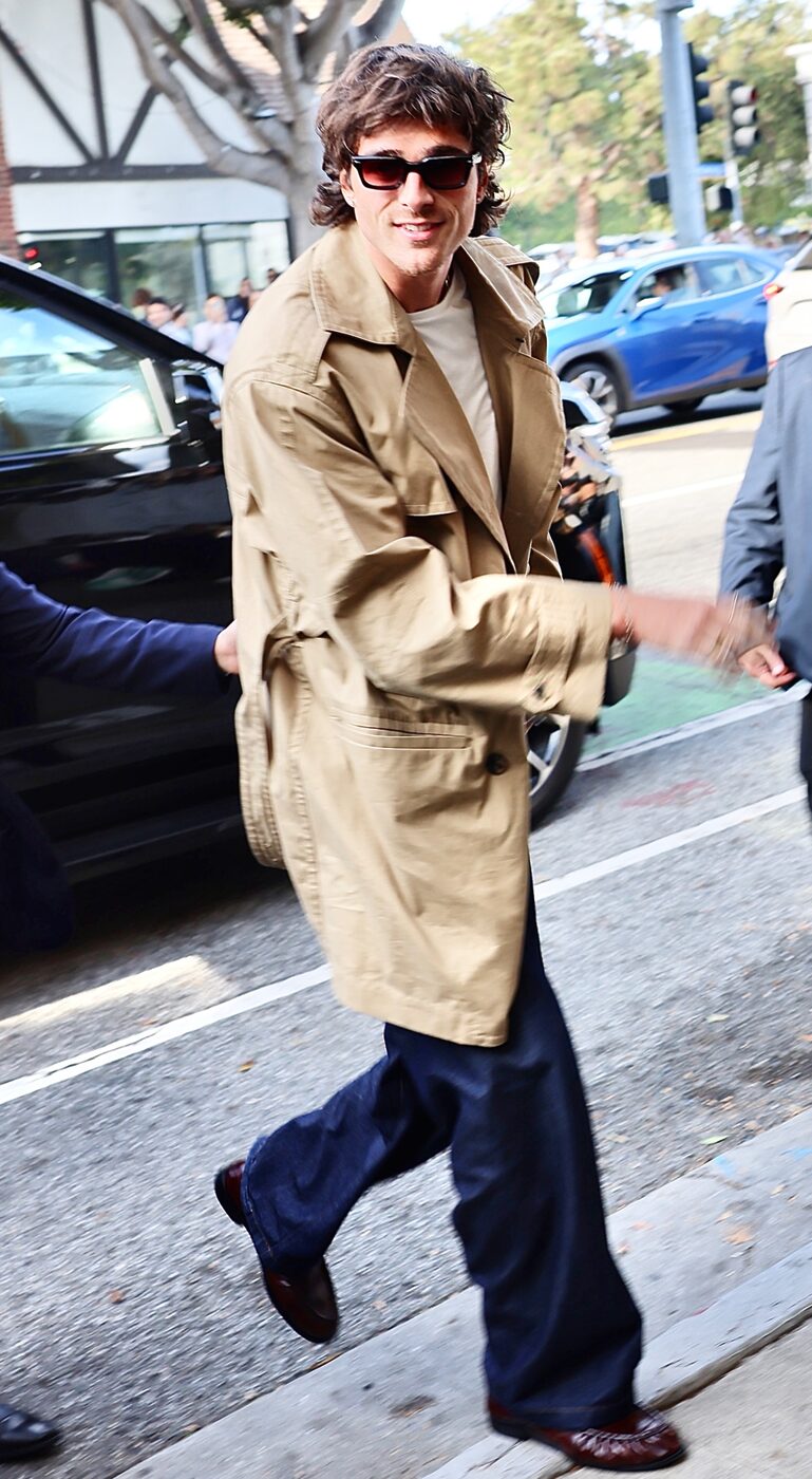 조금 시간을 거슬러 올라가 1월 LA에서 포착된 그의 사복 역시 빼놓을 수 없습니다. 겨울에도 20도를 웃도는 온화한 날씨 속에서 반려견 레일라와 함께 여유로운 산책에 나선 모습이었죠. 이날 그는 가죽 소재의 크롭 재킷에 청바지와 화이트 티셔츠, 모자를 깊게 눌러쓰고 로퍼로 마무리해 지극히 제이콥 엘로디다운 심플하고 캐주얼한 차림을 선보였습니다. 특히 로퍼를 스니커즈처럼 편안하게 활용하는 방식이 인상적이었는데요. 일상과 공식 석상을 넘나들며 어떤 룩에든 이 포멀한 슈즈를 자연스럽게 녹여내는 그의 센스가 돋보였죠.