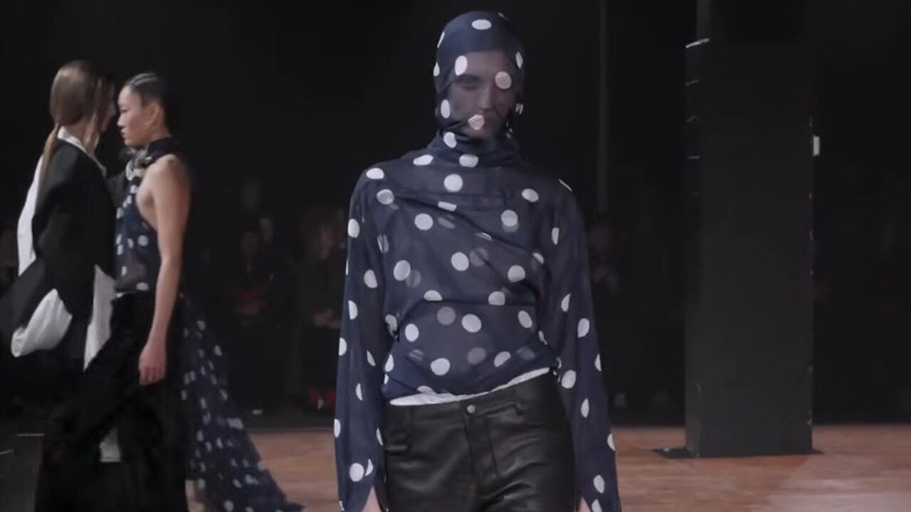 니콜라스 애번은 이번 컬렉션을 구상하며 사적인 기억에서 영감을 받았다고 밝혔다. 빈티지 실크 스카프를 수십 장 이어 붙인 패치워크 톱과 스커트 셋업은 그가 어린 시절 누나를 위해 스카프 드레스를 만들어 주던 기억에서 시작된 것이다. 이러한 업사이클링 테마는 카세트테이프 소재 룩으로 이어졌다. 갈색 마그네틱테이프를 수만 번 겹치고 주름을 잡아 만든 드레스는 멀리서 보면 다크 브라운 컬러의 이브닝드레스 같지만, 가까이에서 볼 때 드러나는 얇고 매끄러운 질감과 광택이 이색적이었다. 피날레 직전에 등장한 40, 41번째 룩 또한 언뜻 화려한 타조 깃털 드레스처럼 보였는데, 이는 사실 빈티지 티셔츠를 잘게 잘라내 붙여 만든 것이었다. 티셔츠에 있던 로고, 텍스트, 컬러 조각이 겹쳐져 팝아트적인 표면을 만들며, 뉴욕 스트리트 문화의 잔상이 이브닝 스타일로 흡수되는 극적인 순간을 연출했다.